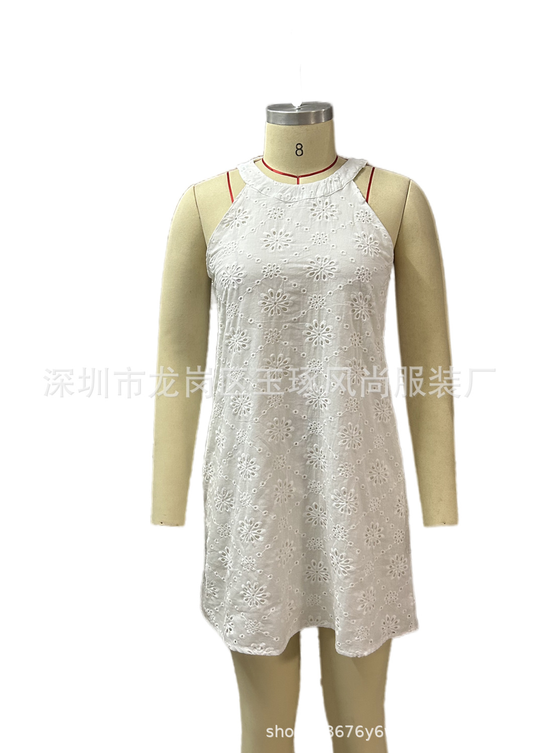2023 유럽과 미국 크로스 국경 대외 무역 여름 새로운 숙녀 레이스 단색 민소매 버튼 교수형 목 아마존 원피스