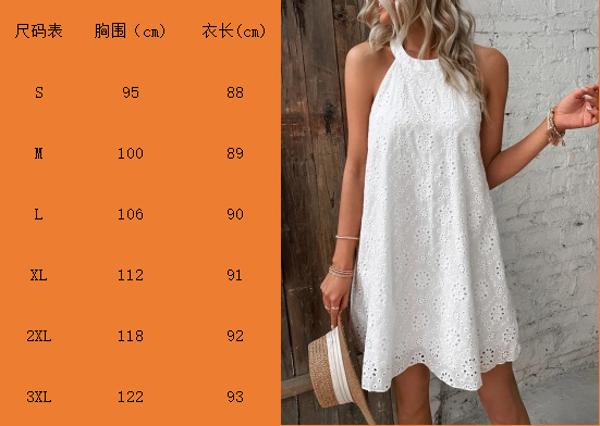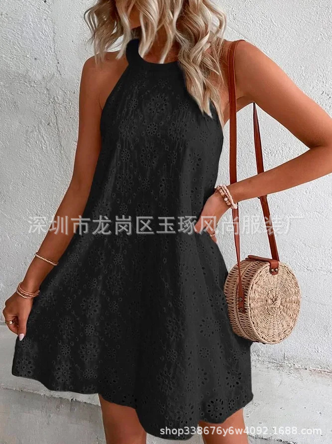 2023 유럽과 미국 크로스 국경 대외 무역 여름 새로운 숙녀 레이스 단색 민소매 버튼 교수형 목 아마존 원피스스토어 가기