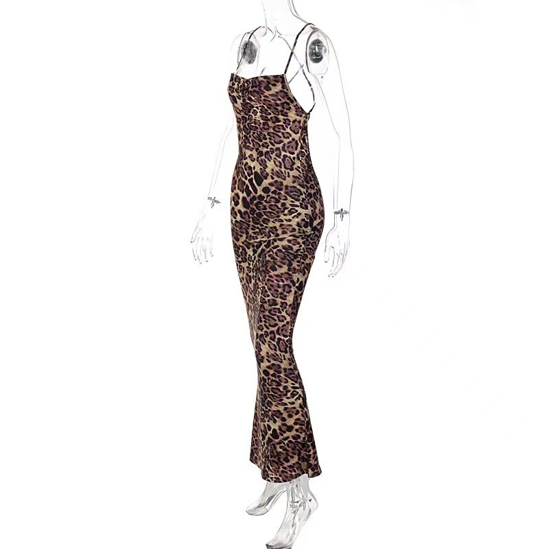 국경 2024 Amazon AliExpress 유럽과 미국 새로운 레오파드 무늬 섹시한 백리스 레이스 업 슬림 롱 원피스스토어 가기