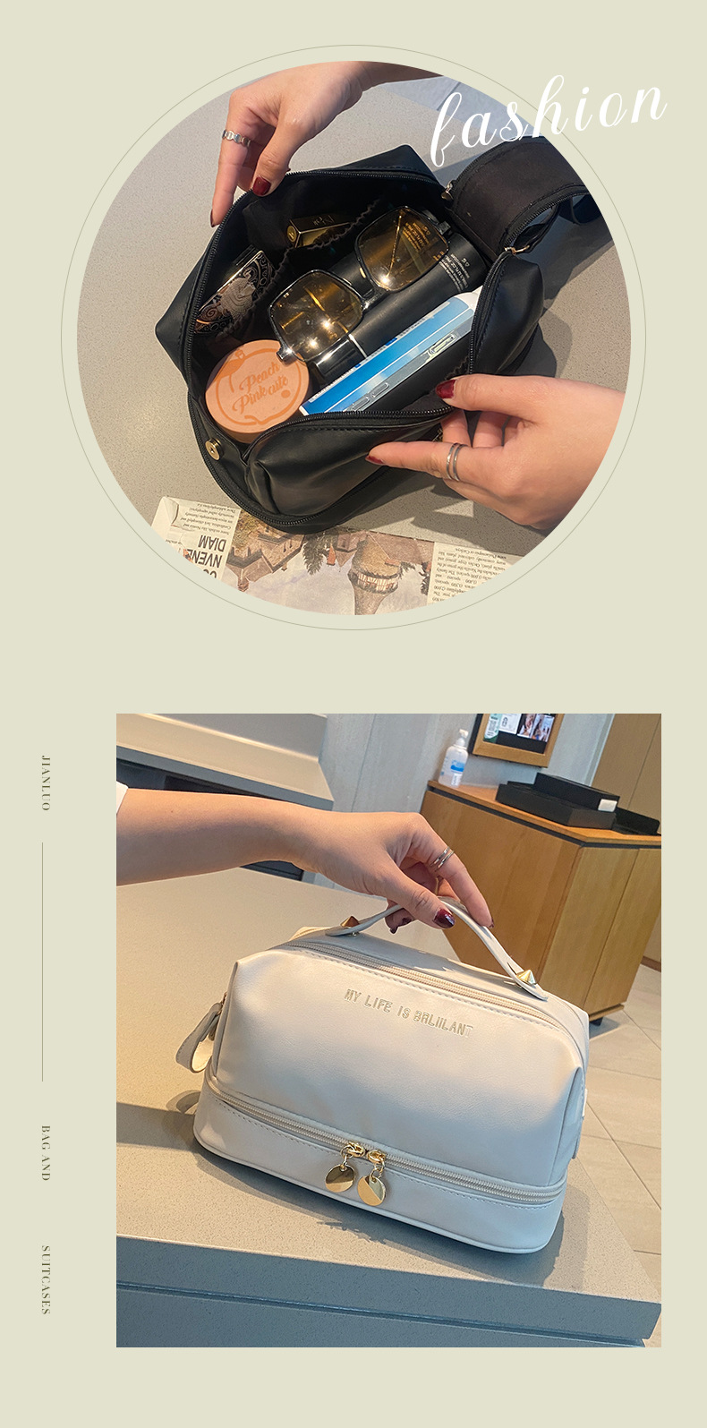 2025년 신형 외출용 간편하고 심플한 방수 세면도구 수납 가방 PU 이중층 대용량 휴대용 방수 화장품 가방스토어 가기