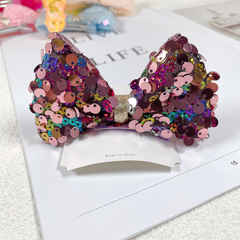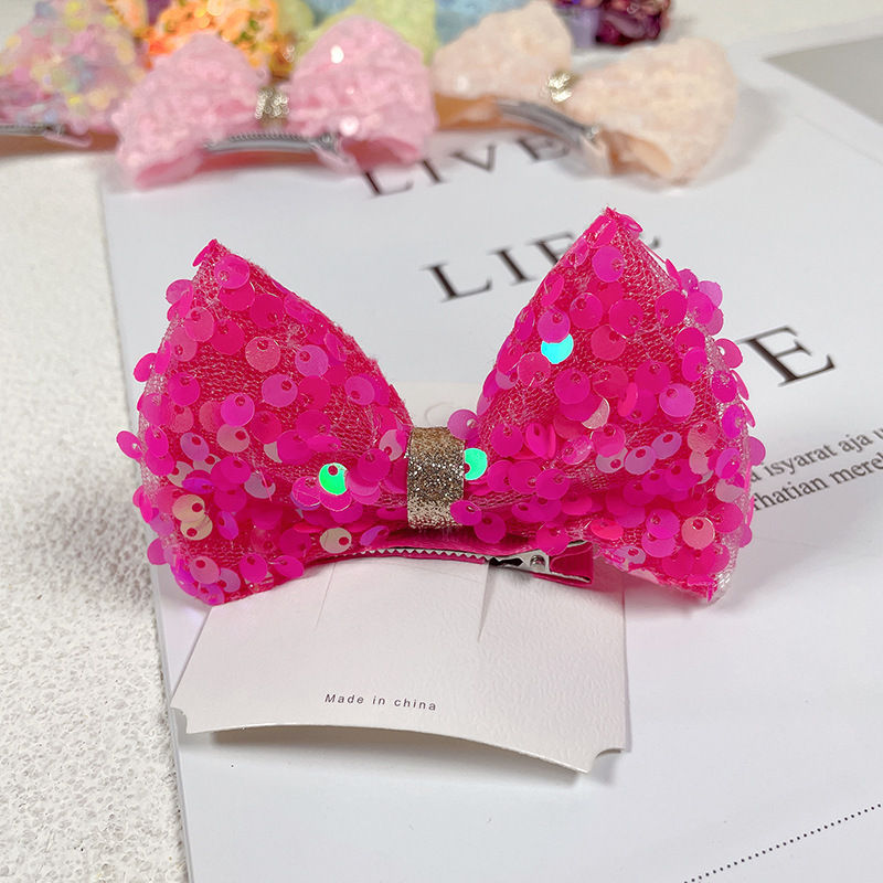 韩版人鱼姬亮片立体蝴蝶结发夹儿童可爱公主节日表演顶夹女童发卡
