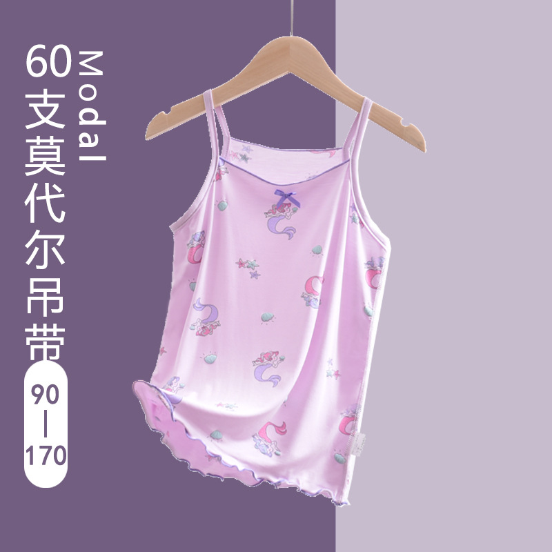 60 모달 코튼 여아 여름 홀터 셔츠 얇은 여성용 보물 아이스 실크 웨이슬 어린이 조끼