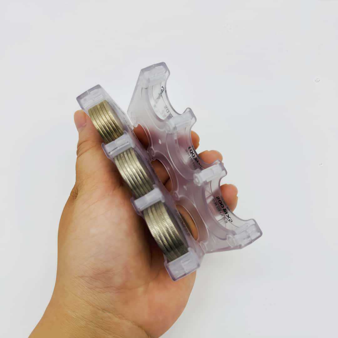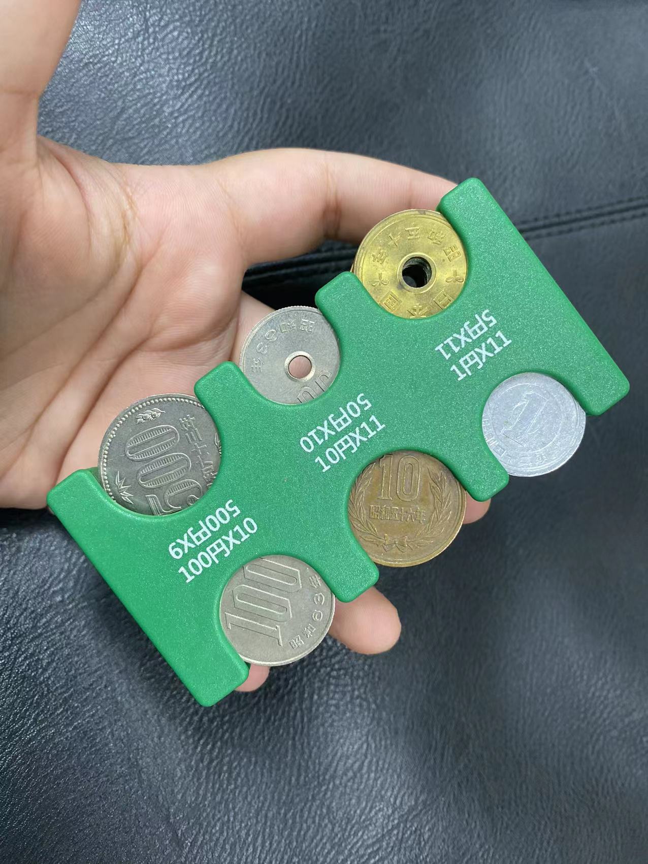 【高品质&轻巧结实】本公司的硬币夹采用高品质ABS树脂主体非常轻盈,约4.5×9.2厘米的小巧手掌尺寸,重量约16克。 可以确实确认收纳硬币的种类和张数,在各种现金的支付时,需要找到零钱的种类,收银前非常方便地取出! 便携零钱夹可以放置家计簿或在家中存放零钱,非常便利。 一眼就可以轻松知道哪个硬币。 可以将日本硬币分类收纳起来的硬币收纳包。