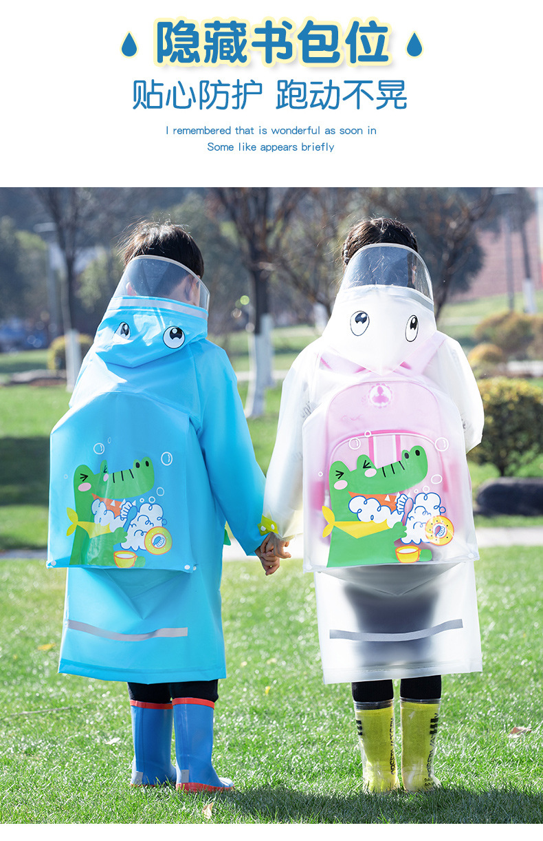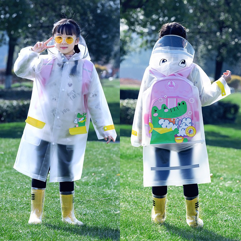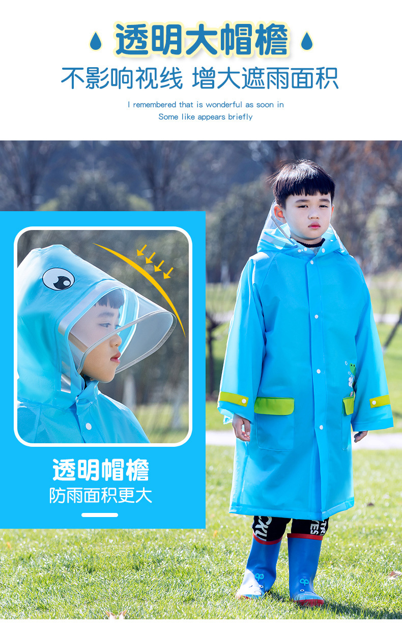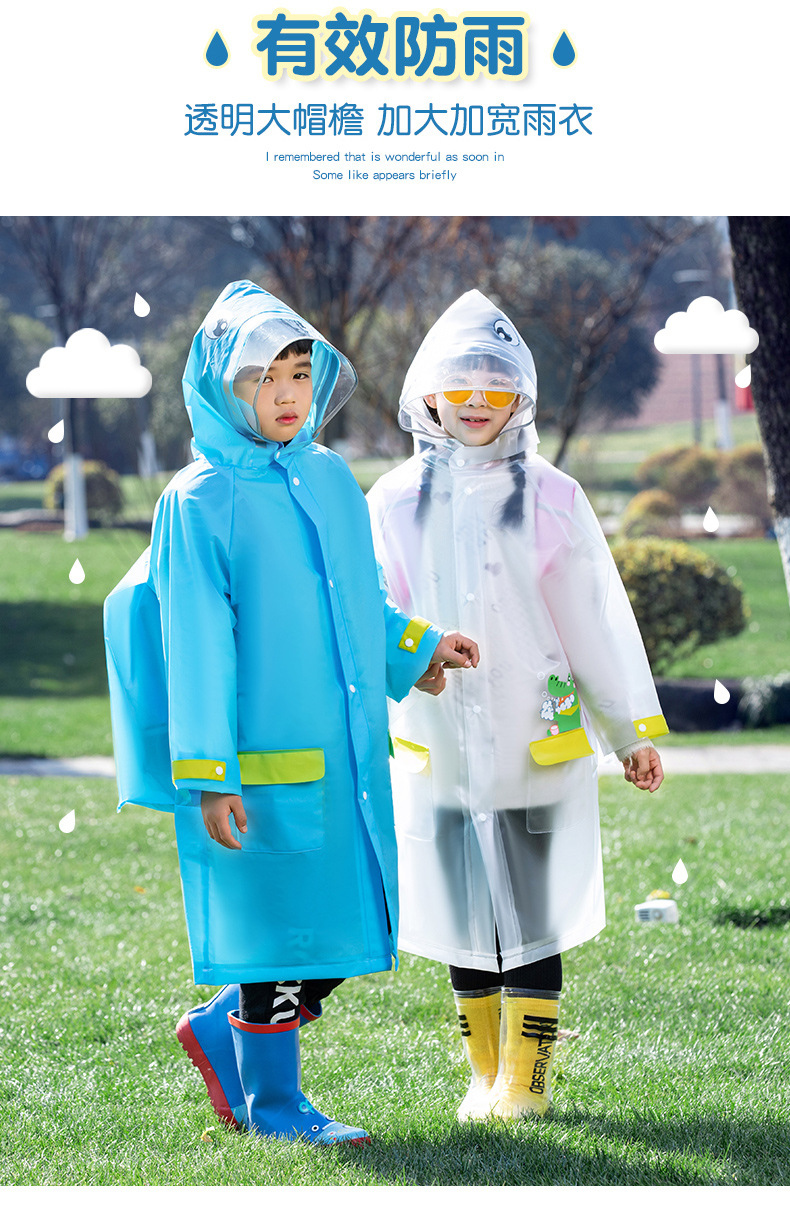 Mingjia EVA 확대 투명 챙 초등학교 아동 비옷 원피스 만능 방수 야외 하이킹 판초