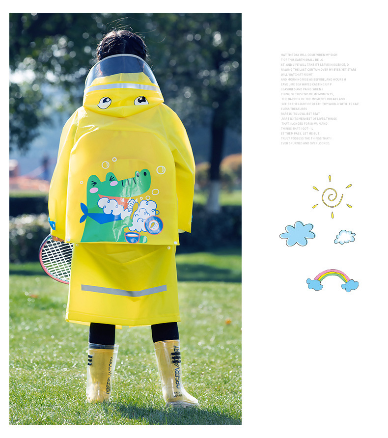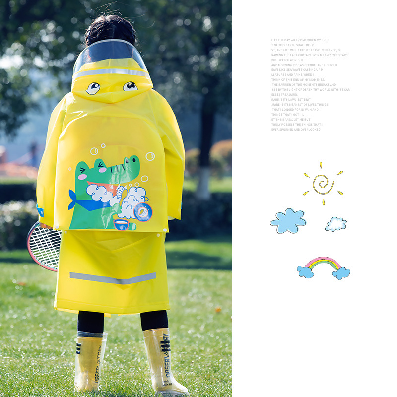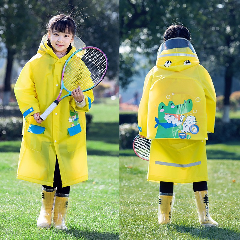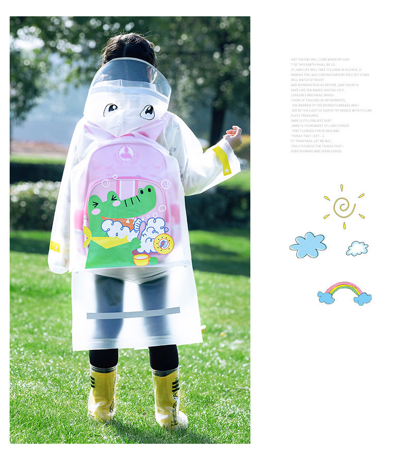 Mingjia EVA 확대 투명 챙 초등학교 아동 비옷 원피스 만능 방수 야외 하이킹 판초