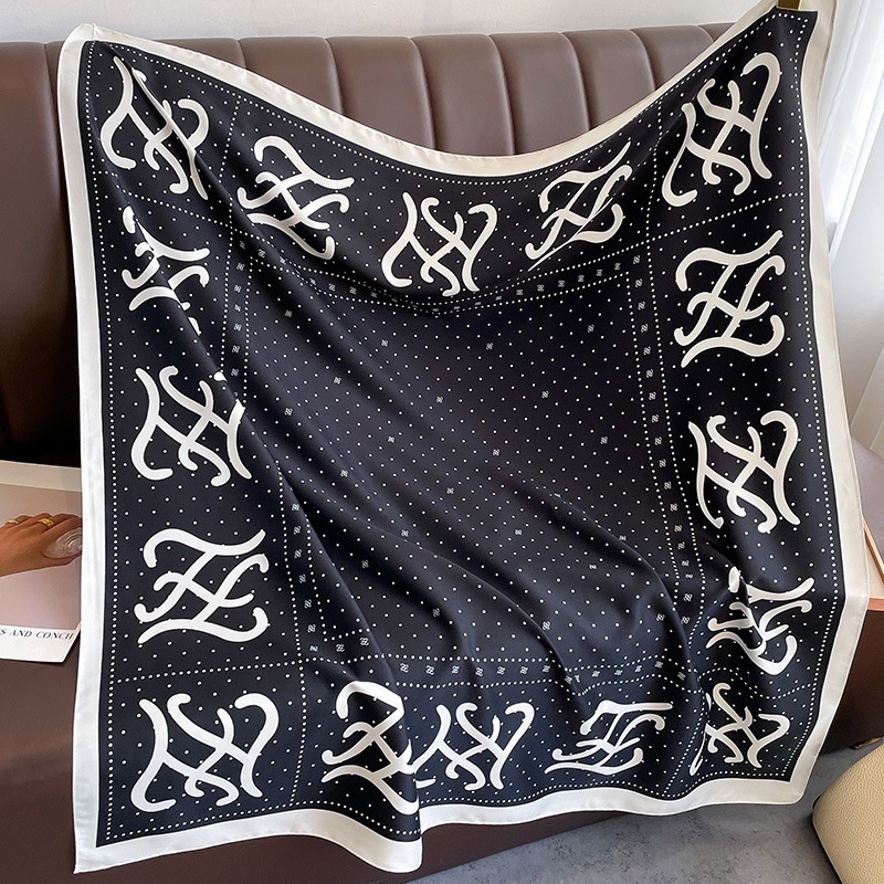 2024 편지 패션 봄과 가을 새로운 스타일 우아한 작은 광장 스카프 여성 실크 스카프 전문 스카프 선 스크린 비치 타월 여성