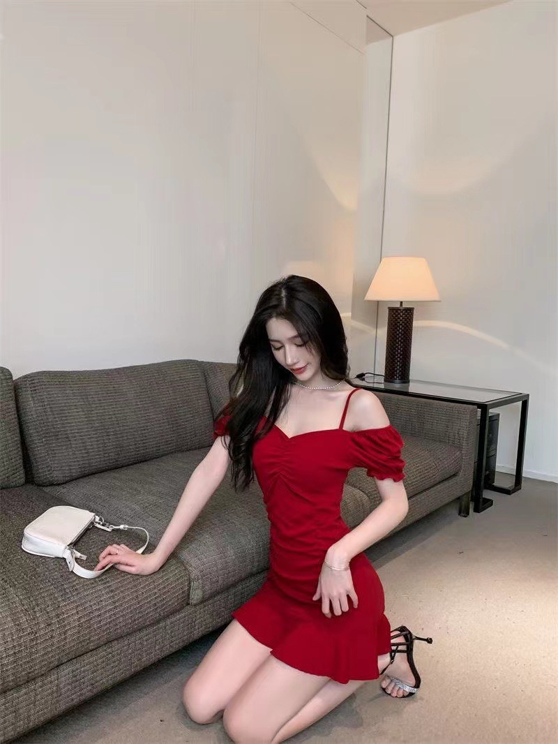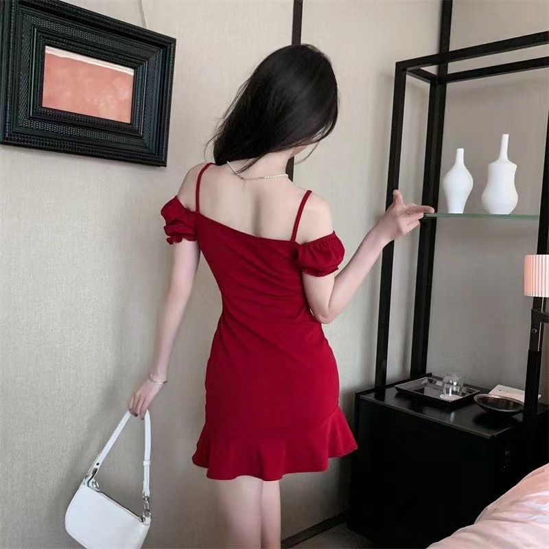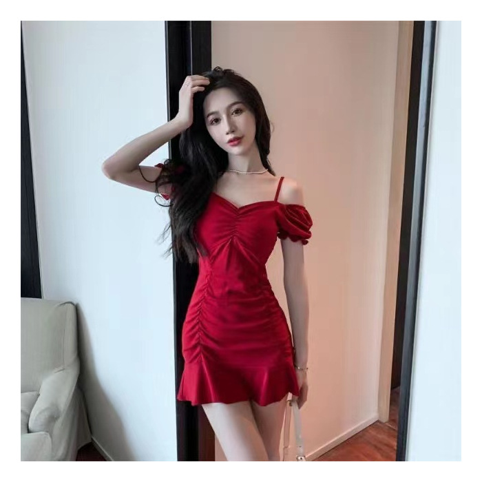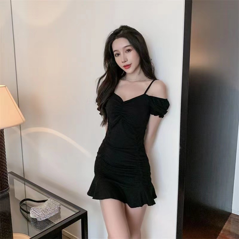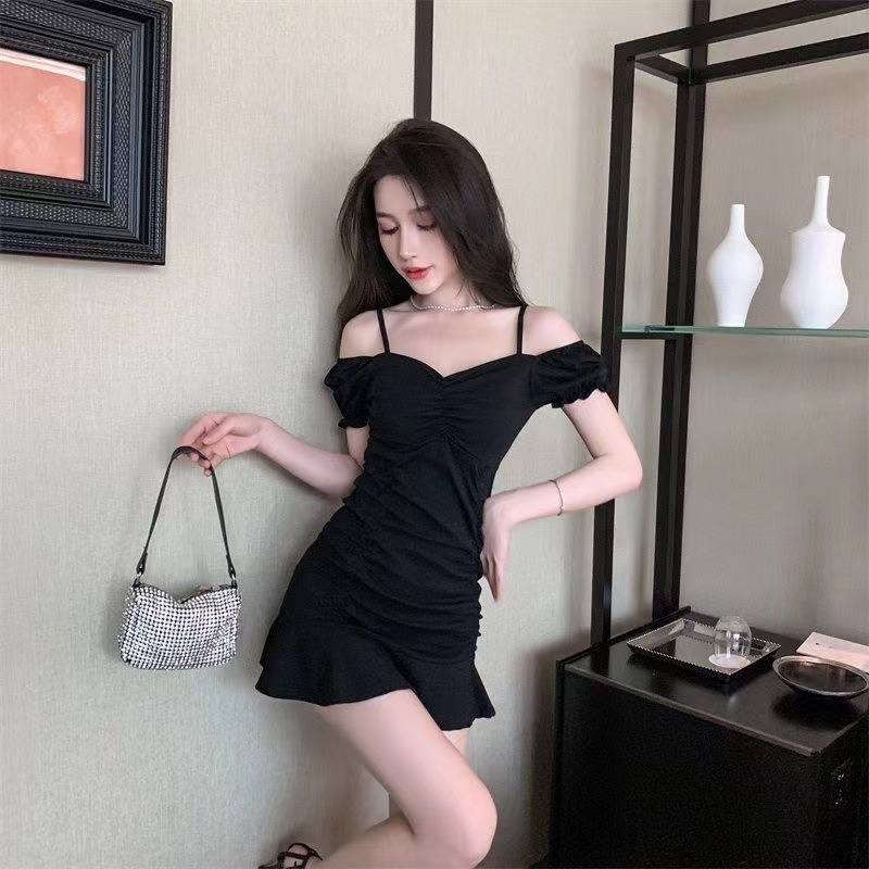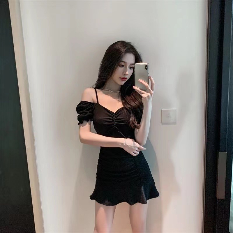 여름 스파이스 여자 여자의 섹시 우아한 오프 숄더 스트랩 짧은 스커트 슬림핏 슬리밍 배꼽 커버 엉덩이 원피스스토어 가기