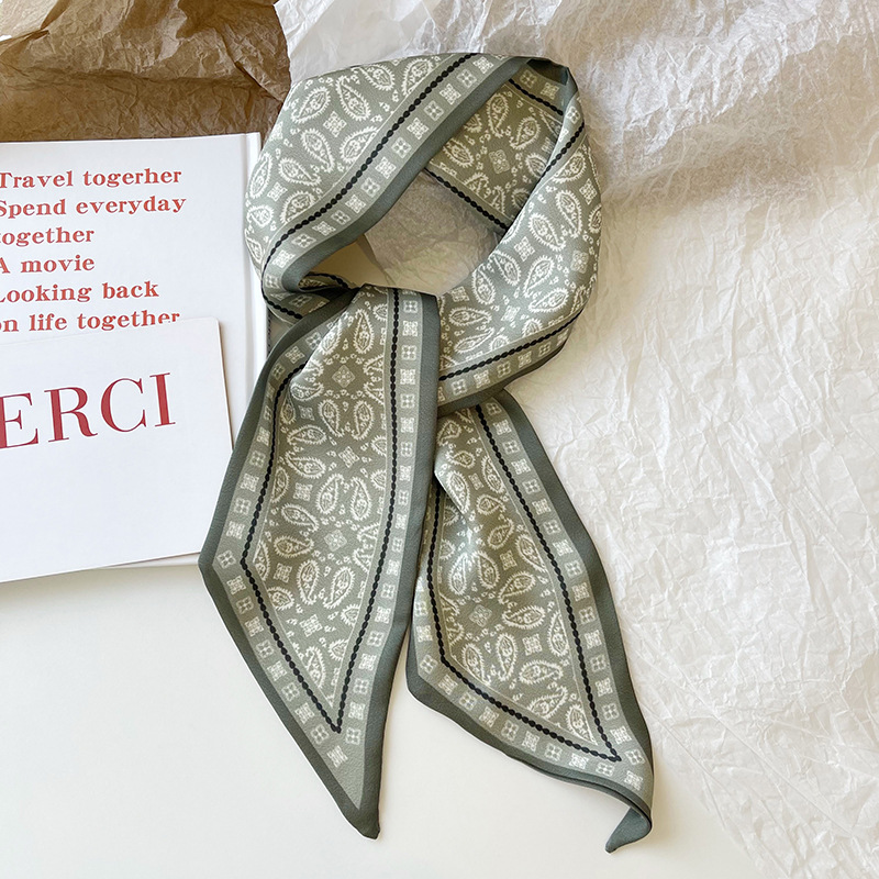 봄 실크 스카프 여성 선물 한국식 경 사진 리본 실크 스카프 좁은 긴 스카프 모조 실크 스카프