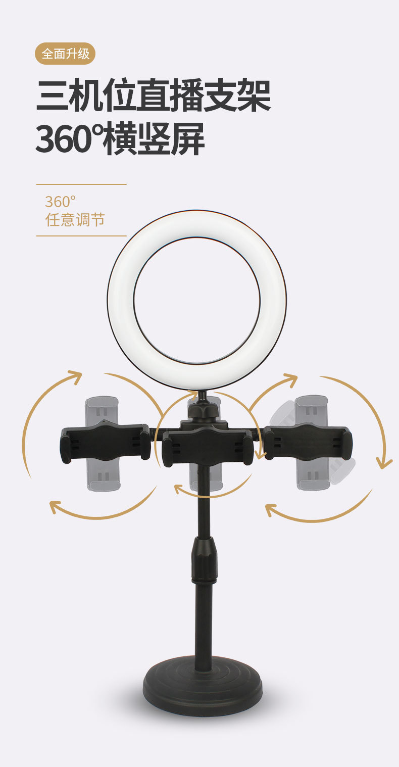 16cm 3 위치 라이브 필 라이트 브래킷 3 색 온도 디밍 사진 조명 데스크탑 링 LED 셀카 라이트