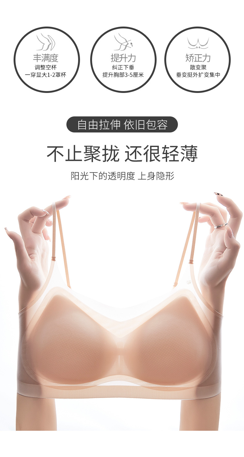 흔적이없는 속옷 여성용 여름 큰 가슴 작은 개더 업 무테 브래지어 스포츠 아름다운 등 브래지어 여성용 초박형 조절 가능스토어 가기