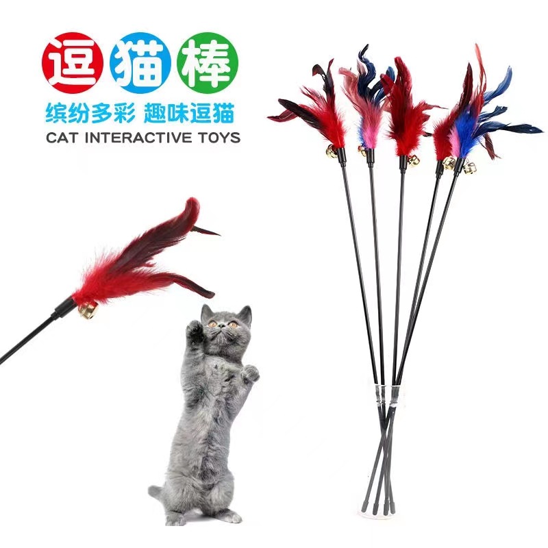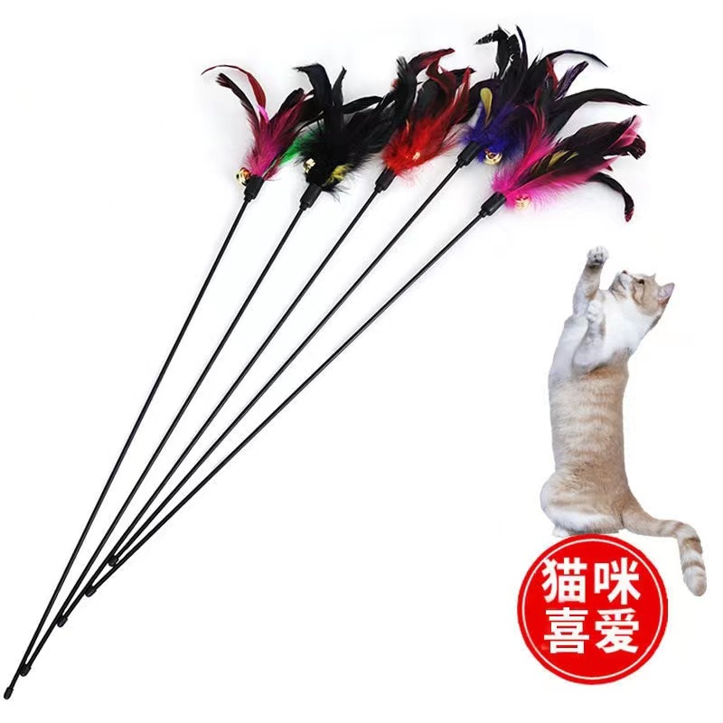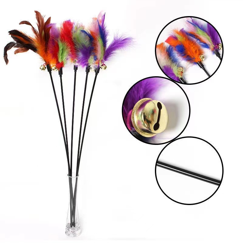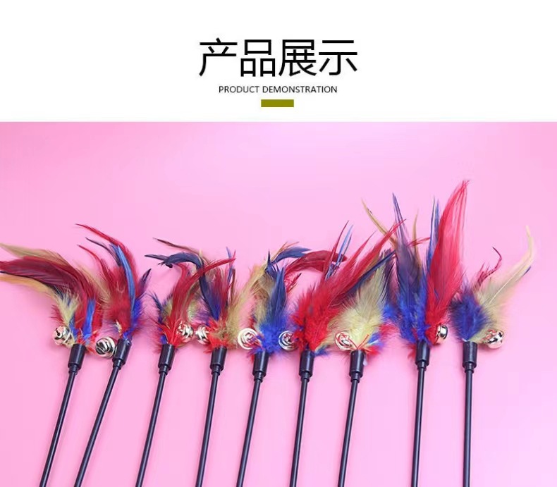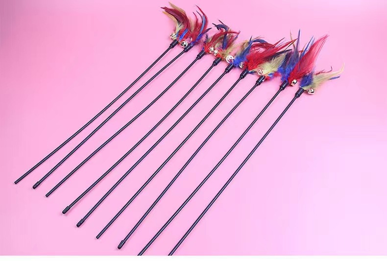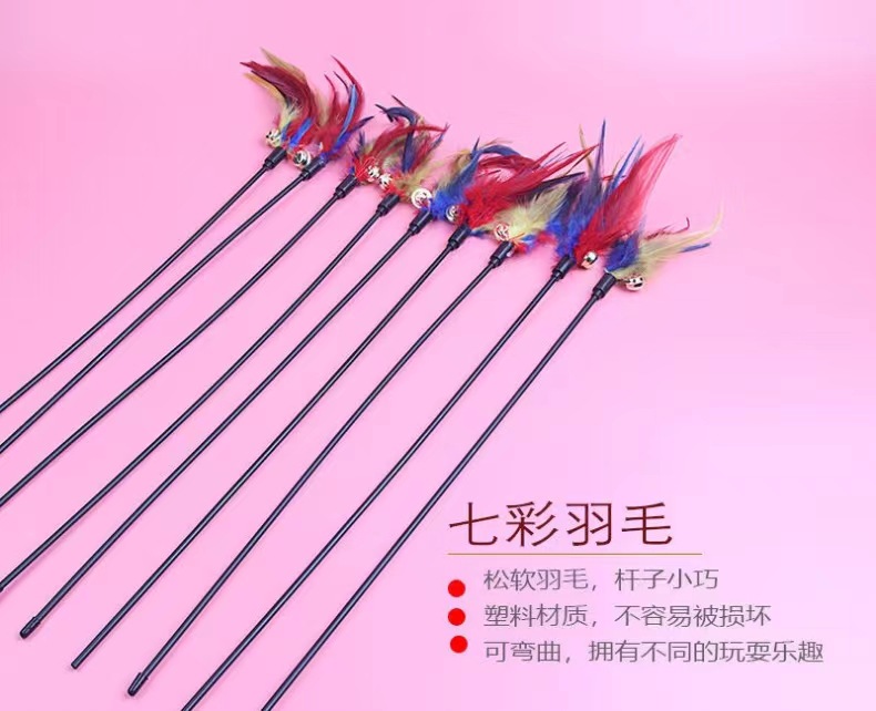 고양이 새끼 고양이 물린-저항하는 벨트에 다채로운 깃털 재미있는 고양이 스틱 1 새로운 깃털 긴 막대 닭 깃털 살포기 애완 동물 고양이