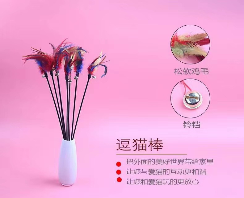 고양이 새끼 고양이 물린-저항하는 벨트에 다채로운 깃털 재미있는 고양이 스틱 1 새로운 깃털 긴 막대 닭 깃털 살포기 애완 동물 고양이스토어 가기