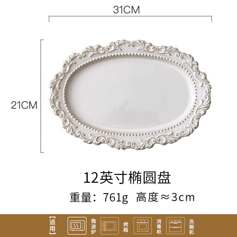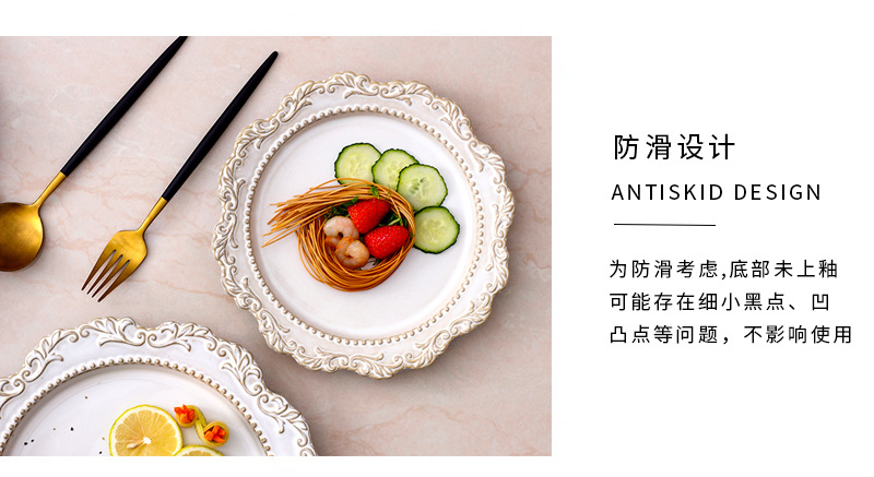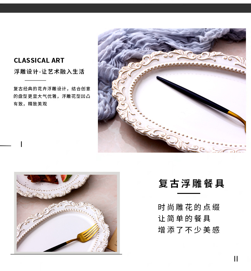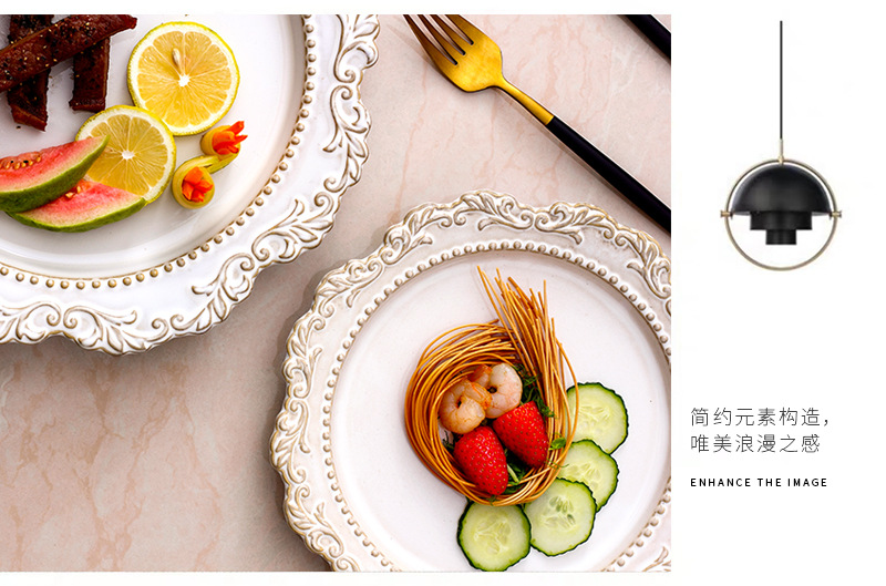 프랑스 바로크 빈티지 양각 궁전 스타일 세라믹 디너 플레이트 유럽 스타일 식기 서양 접시 수프 접시 그릇 접시 세트스토어 가기