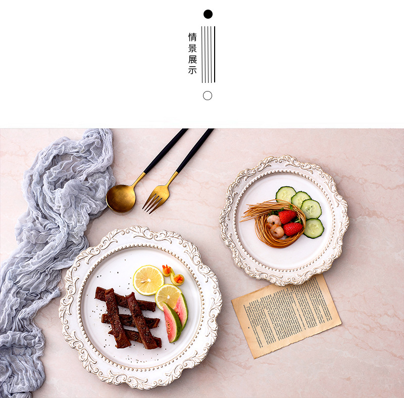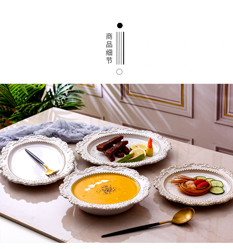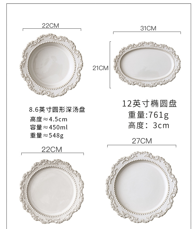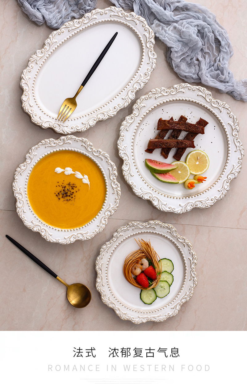 프랑스 바로크 빈티지 양각 궁전 스타일 세라믹 디너 플레이트 유럽 스타일 식기 서양 접시 수프 접시 그릇 접시 세트