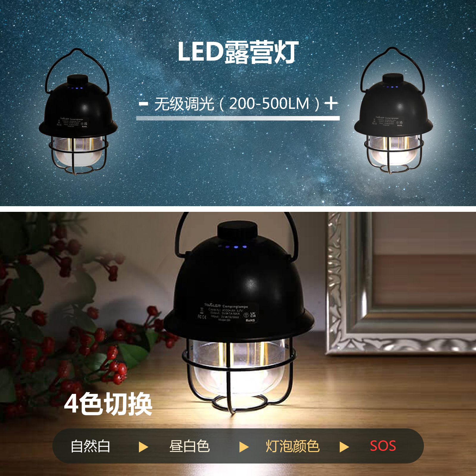 새로운 야외 캠핑 램프 휴대용 LED 캠핑 텐트 램프 소형 군사 캡 캠프 램프 조명 교수형 말 램프스토어 가기