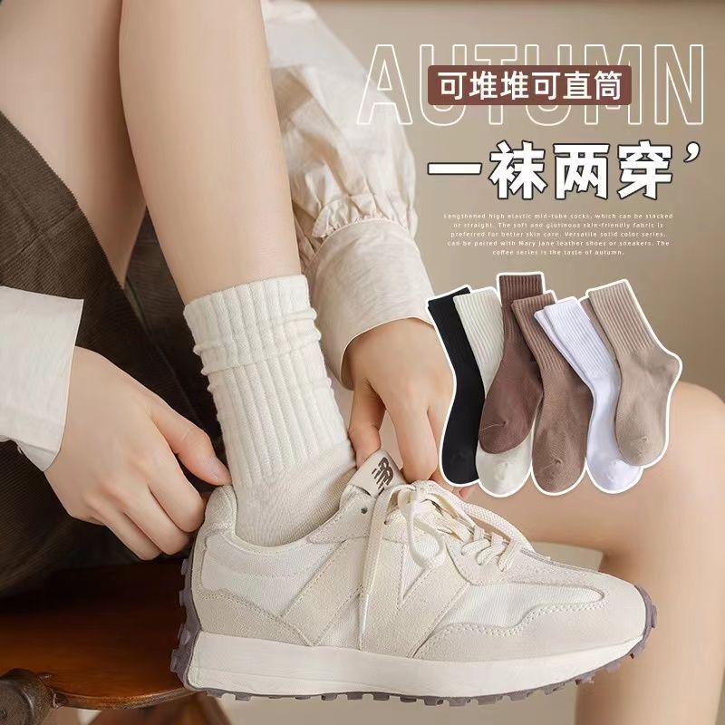 • 여성용 미드 튜브 양말 [하이 고무 밴드]]