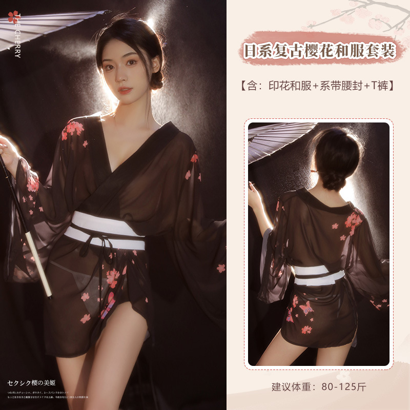 Faimu 일본식 복고풍 벚꽃 기모노 세트 6890 여성 성인 교복 유혹 유혹 속옷 도매