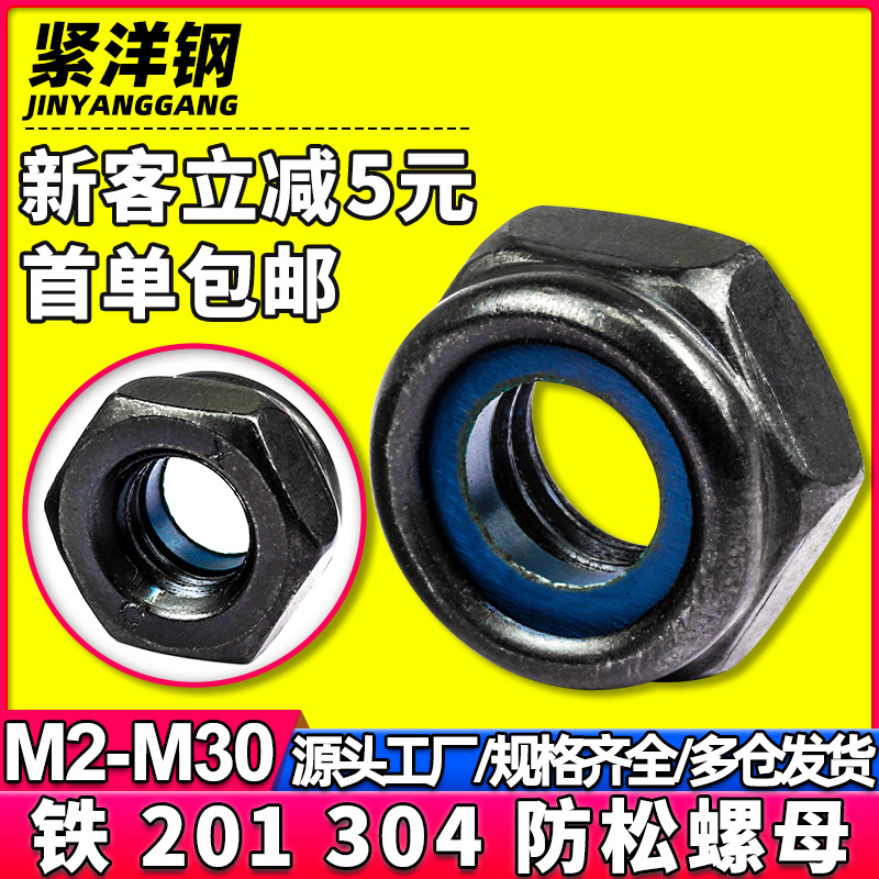 아이언 블랙 육각형 나일론 잠금 너트 블랙 셀프 잠금 너트 안티 릴리스 너트 M2/M6