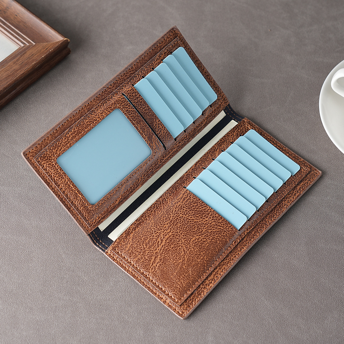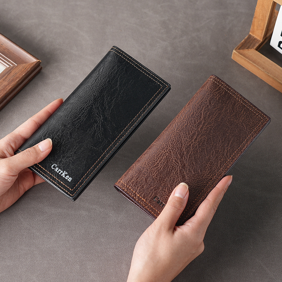 재고 도매 남성 지갑 2023 새로운 빈티지 질감 긴 지갑 부드러운 가죽 핸드백 멀티 카드 카드 가방스토어 가기