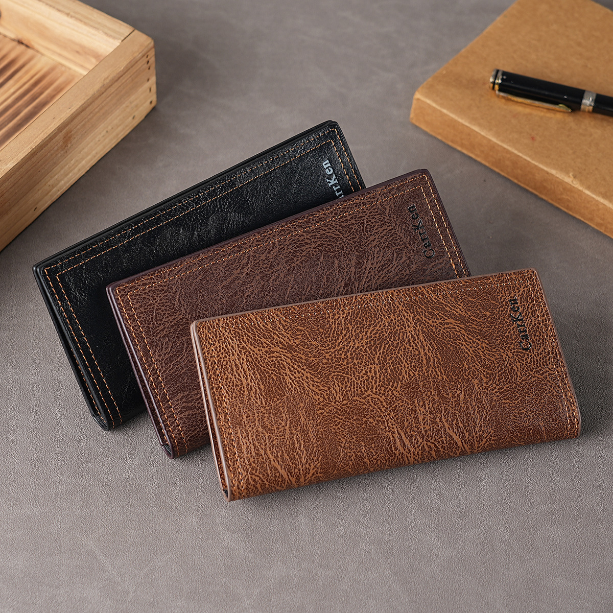 재고 도매 남성 지갑 2023 새로운 빈티지 질감 긴 지갑 부드러운 가죽 핸드백 멀티 카드 카드 가방