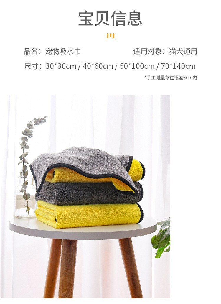 개와 고양이 목욕 타월 섬유 산호 양털 양면 두꺼운 속건 흡수 타월 애완 동물 생필품스토어 가기