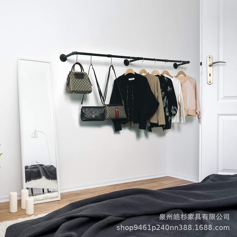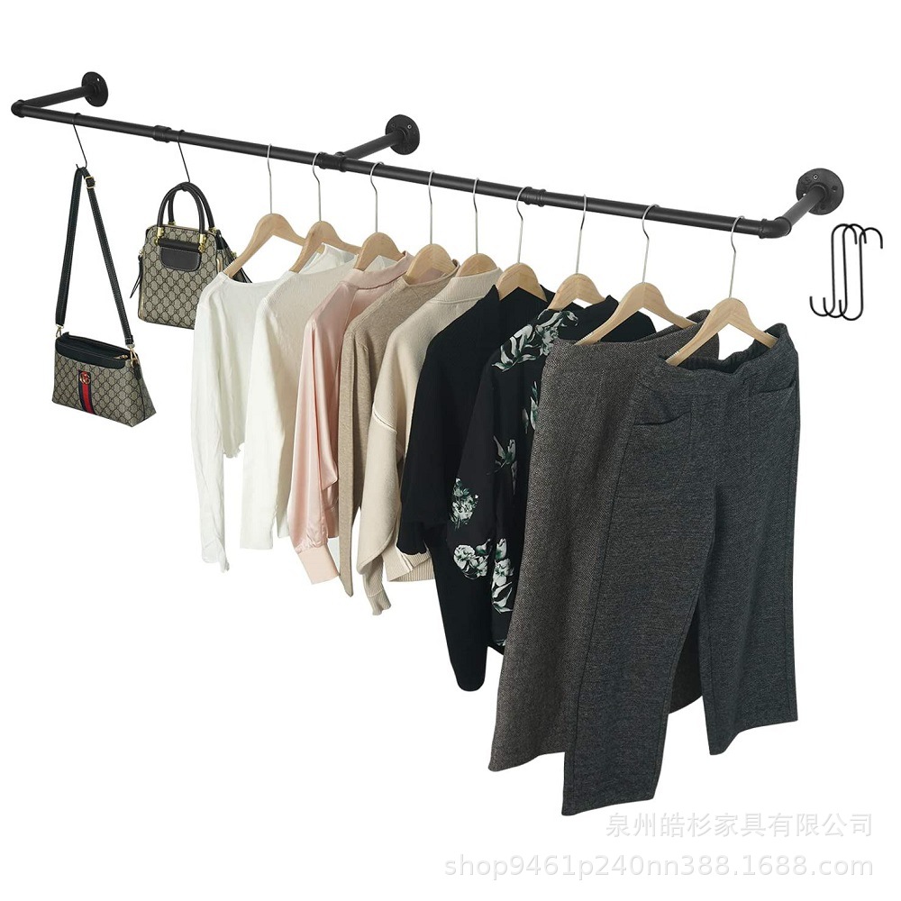 S 자형 후크 벽에 장착 된 의류 랙 대형 철제 의류 폴 세탁실 철제 의류 기둥이있는 산업용 파이프 걸이스토어 가기