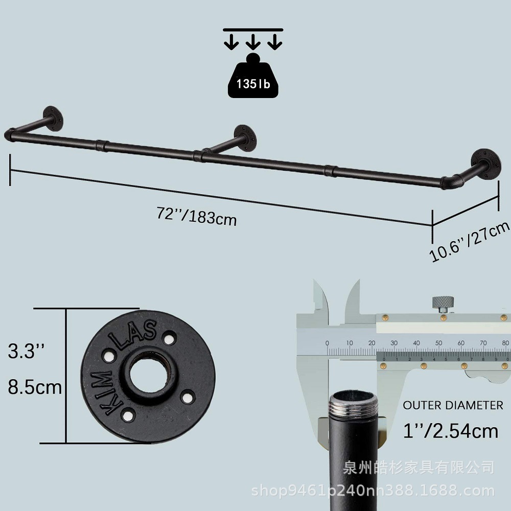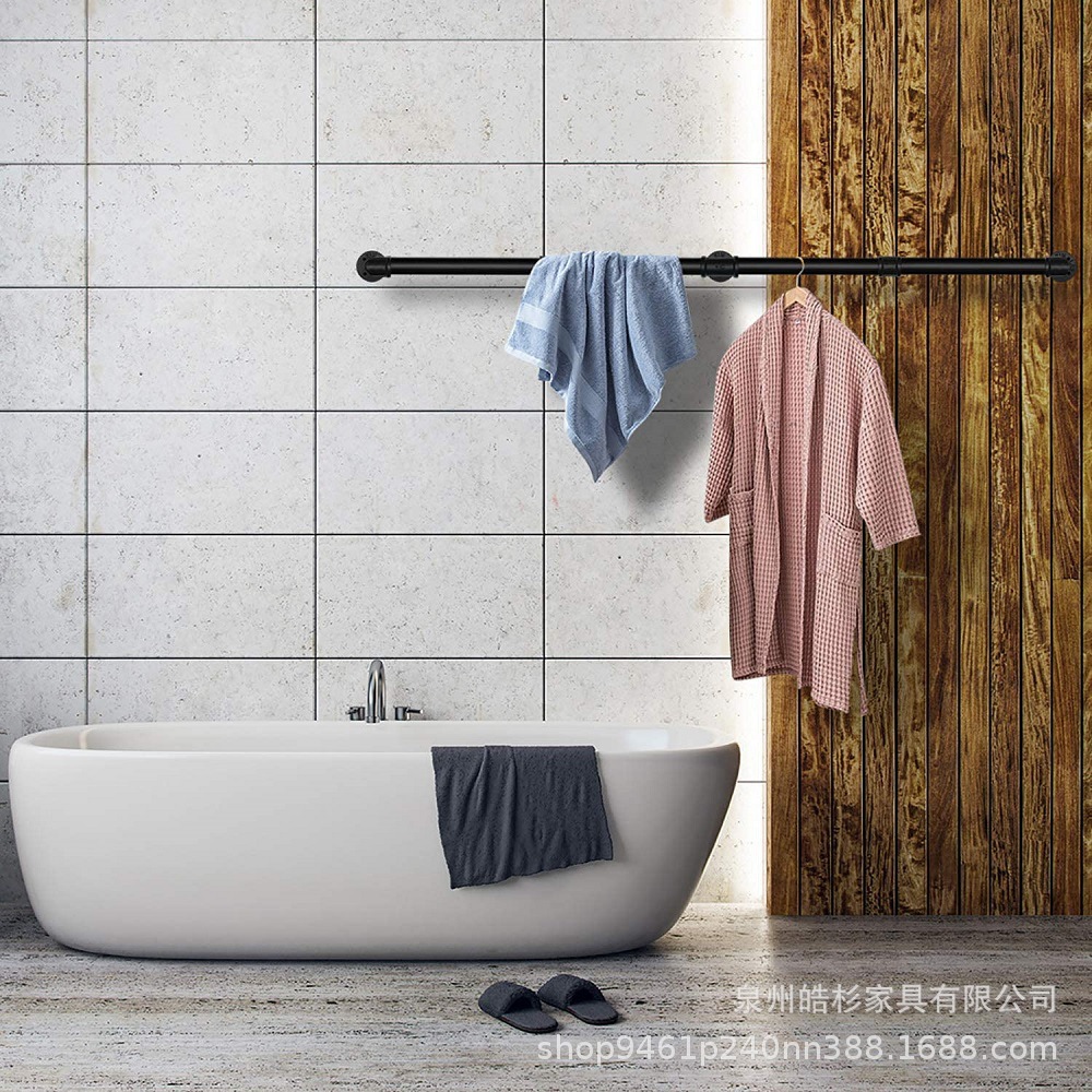 S 자형 후크 벽에 장착 된 의류 랙 대형 철제 의류 폴 세탁실 철제 의류 기둥이있는 산업용 파이프 걸이
