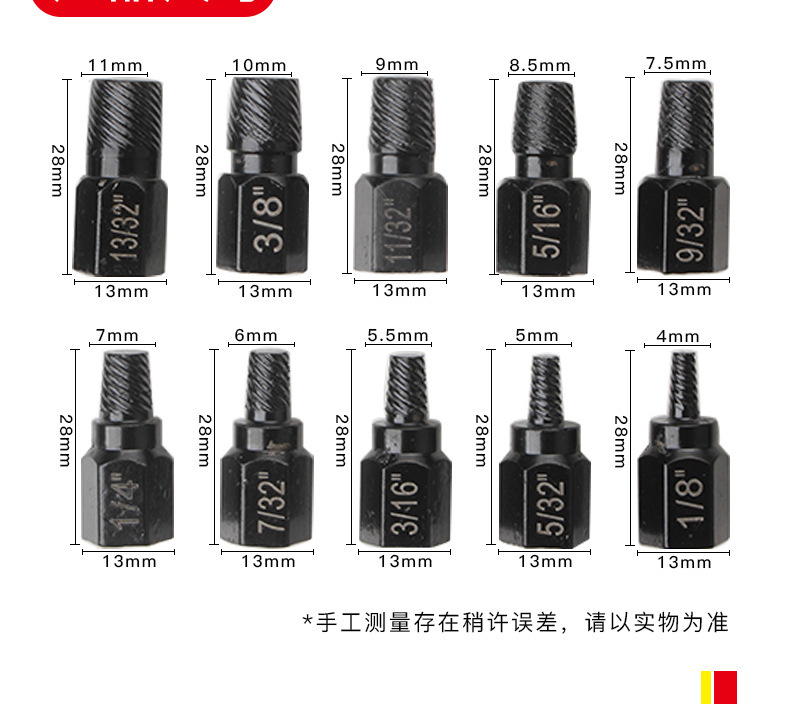 나사 너트 제거제 깨진 나사 제거제 깨진 머리 나사 육각 소켓 볼트 제거 도구 10 개 세트