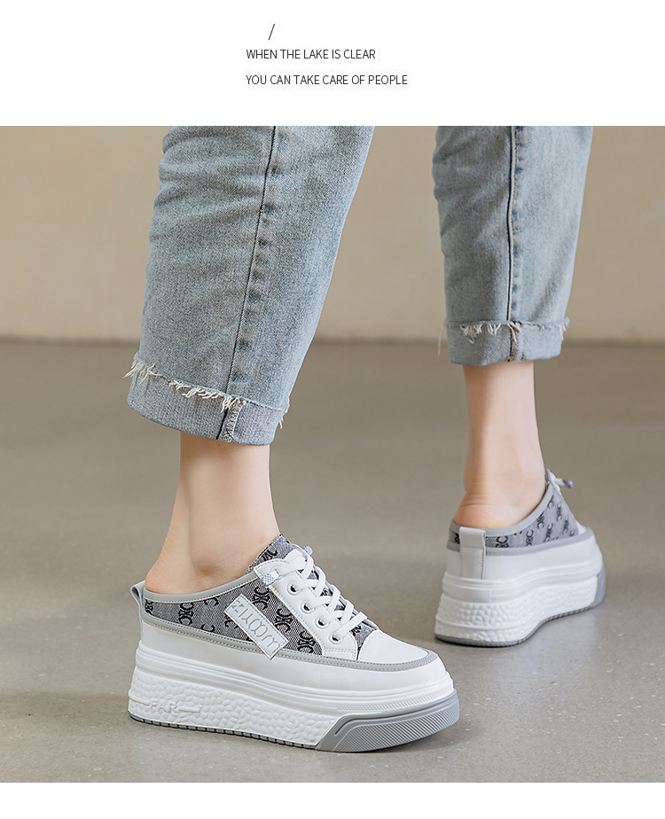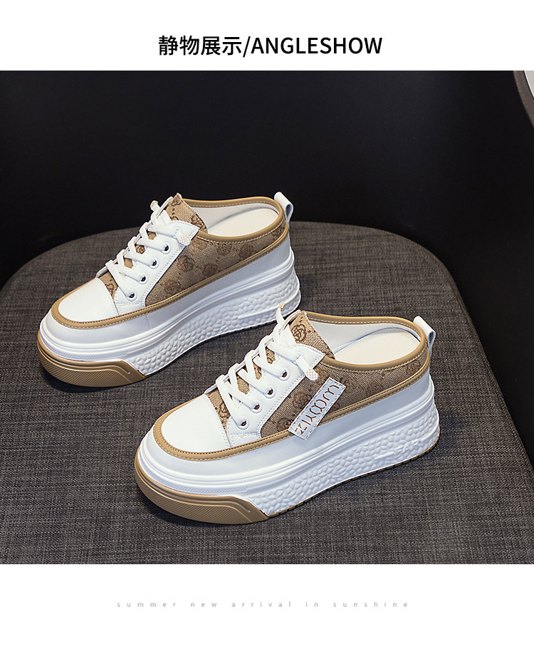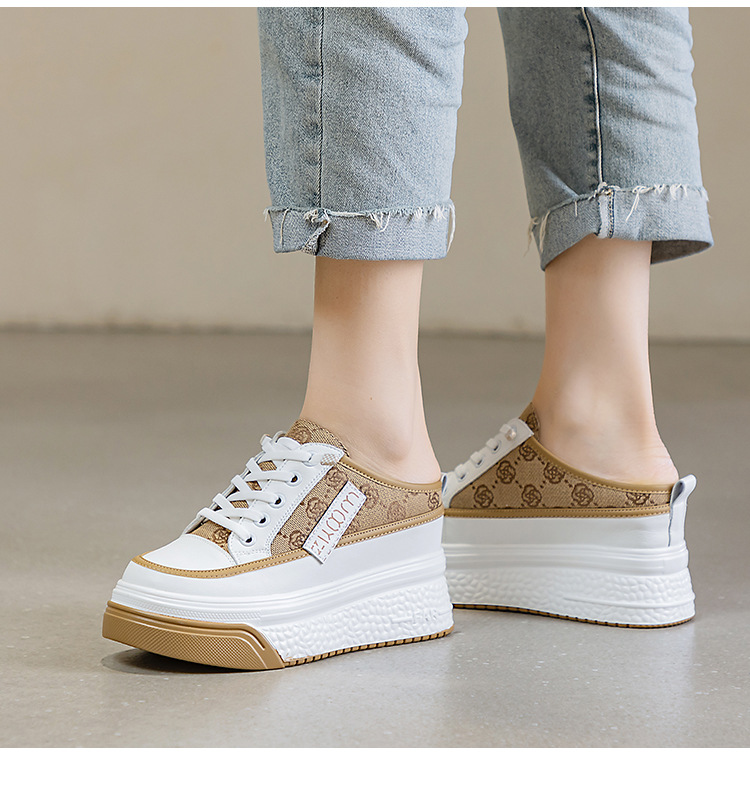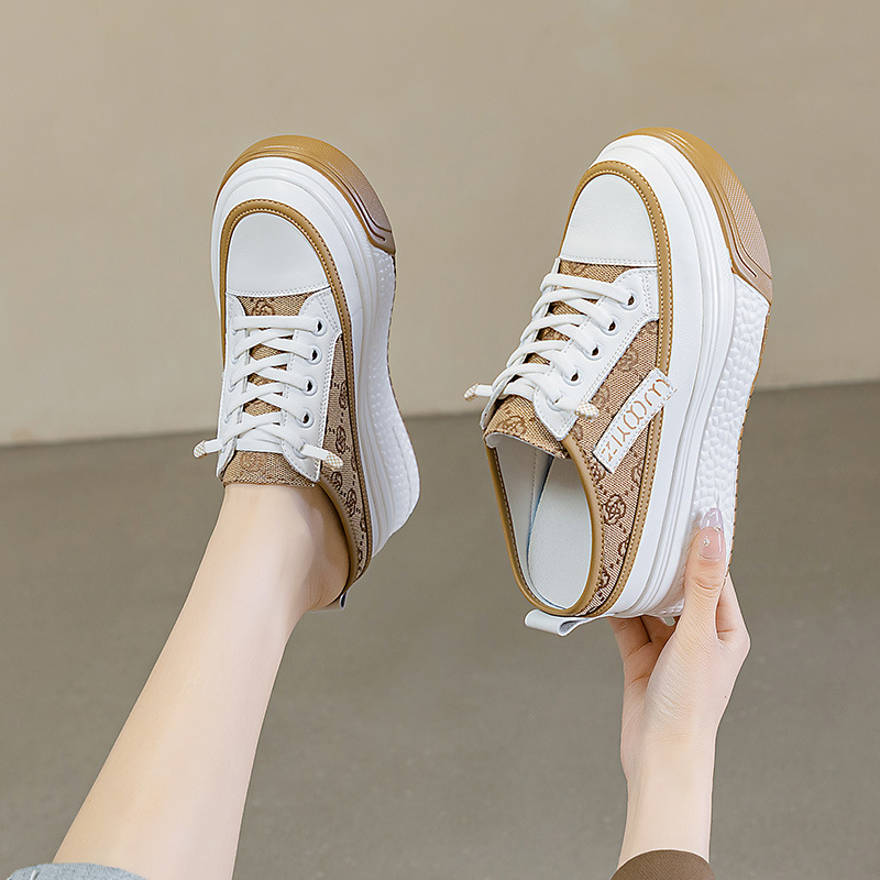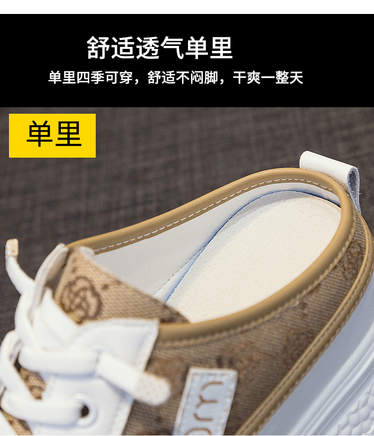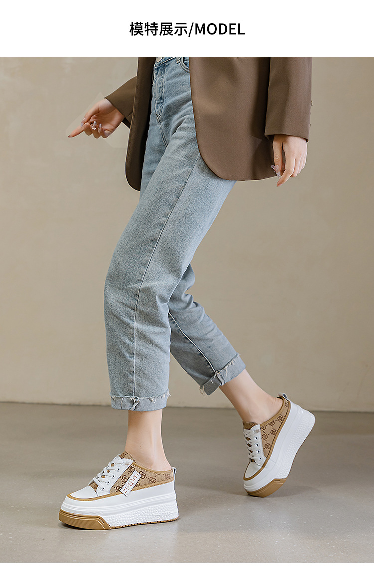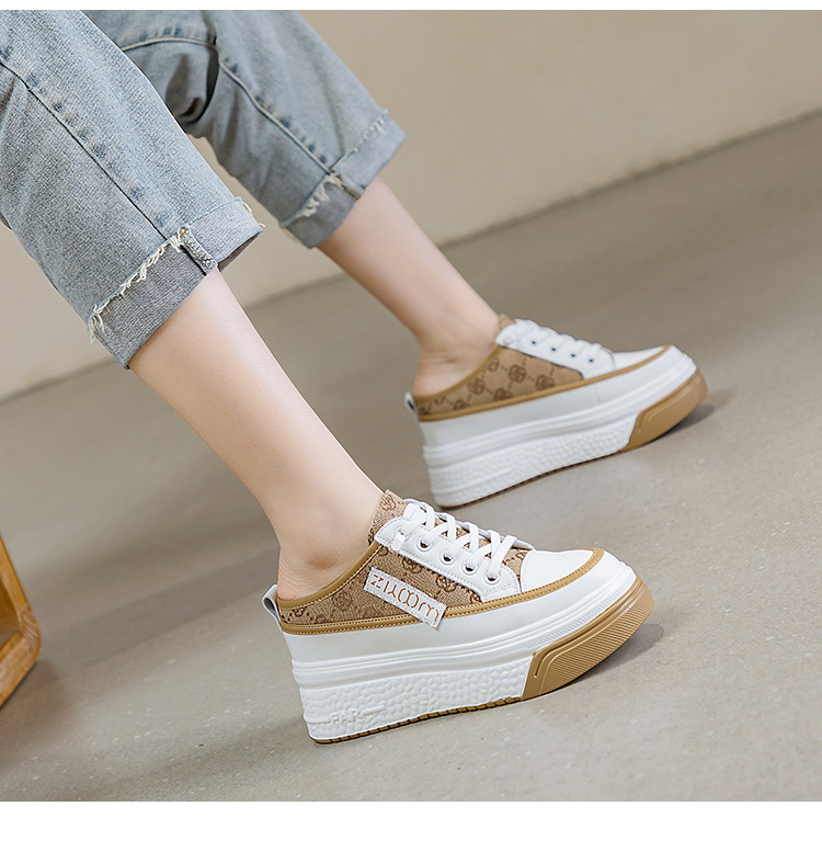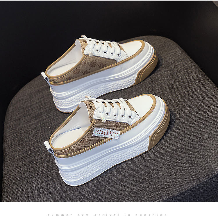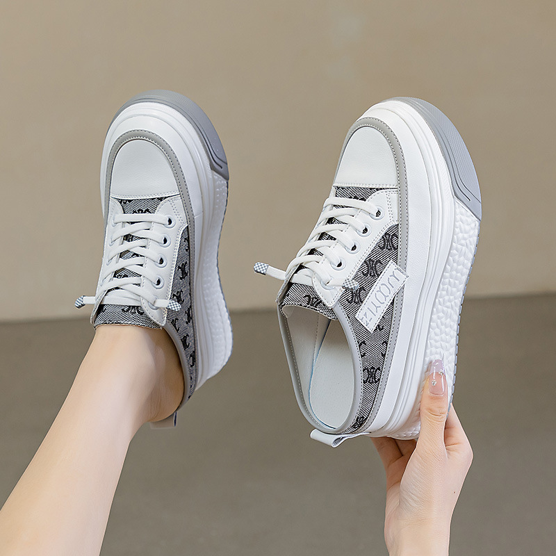Baotou 슬리퍼 여성용 2023 봄 여름 새로운 내부 높이 증가 여성 신발 정품 가죽 두꺼운 밑창 통기성 메쉬 슬립온 여성용 쿨 오프스토어 가기