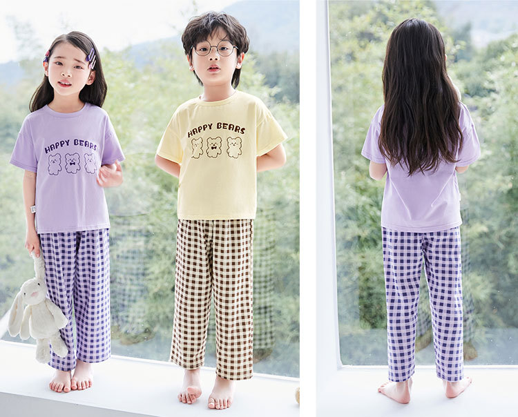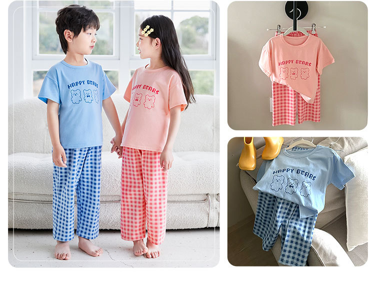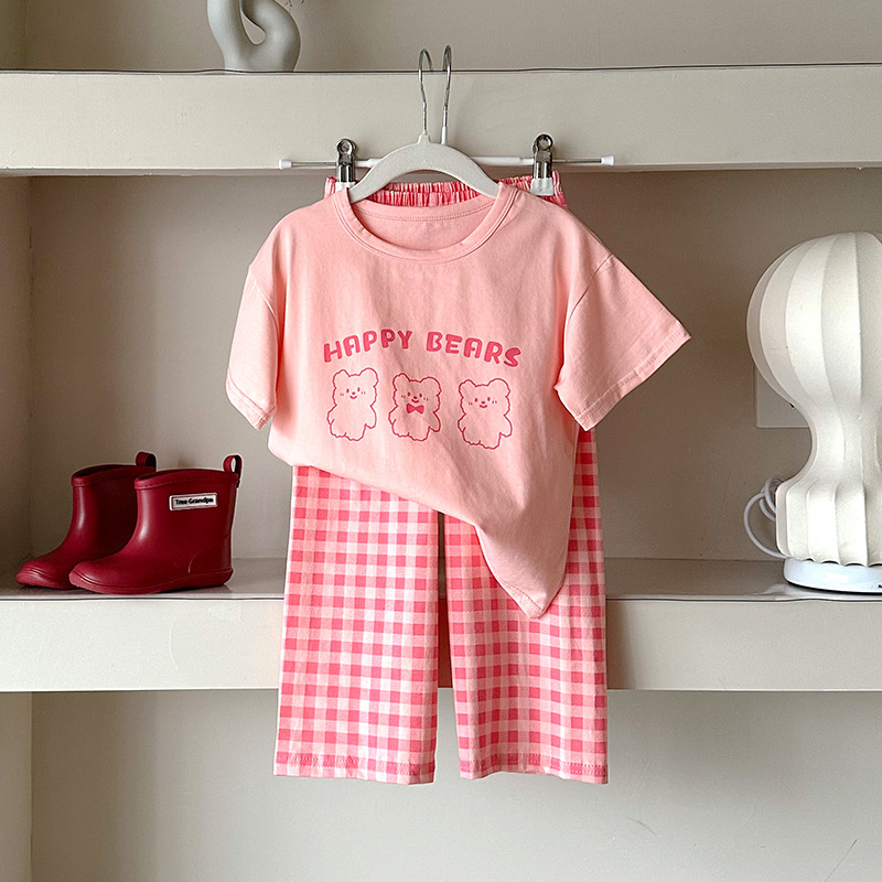 2023 새로운 아동 세트 여름 패션 라이크라 면 홈 의류 부모-자식 반팔 바지 투피스 재고스토어 가기