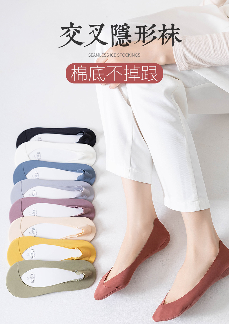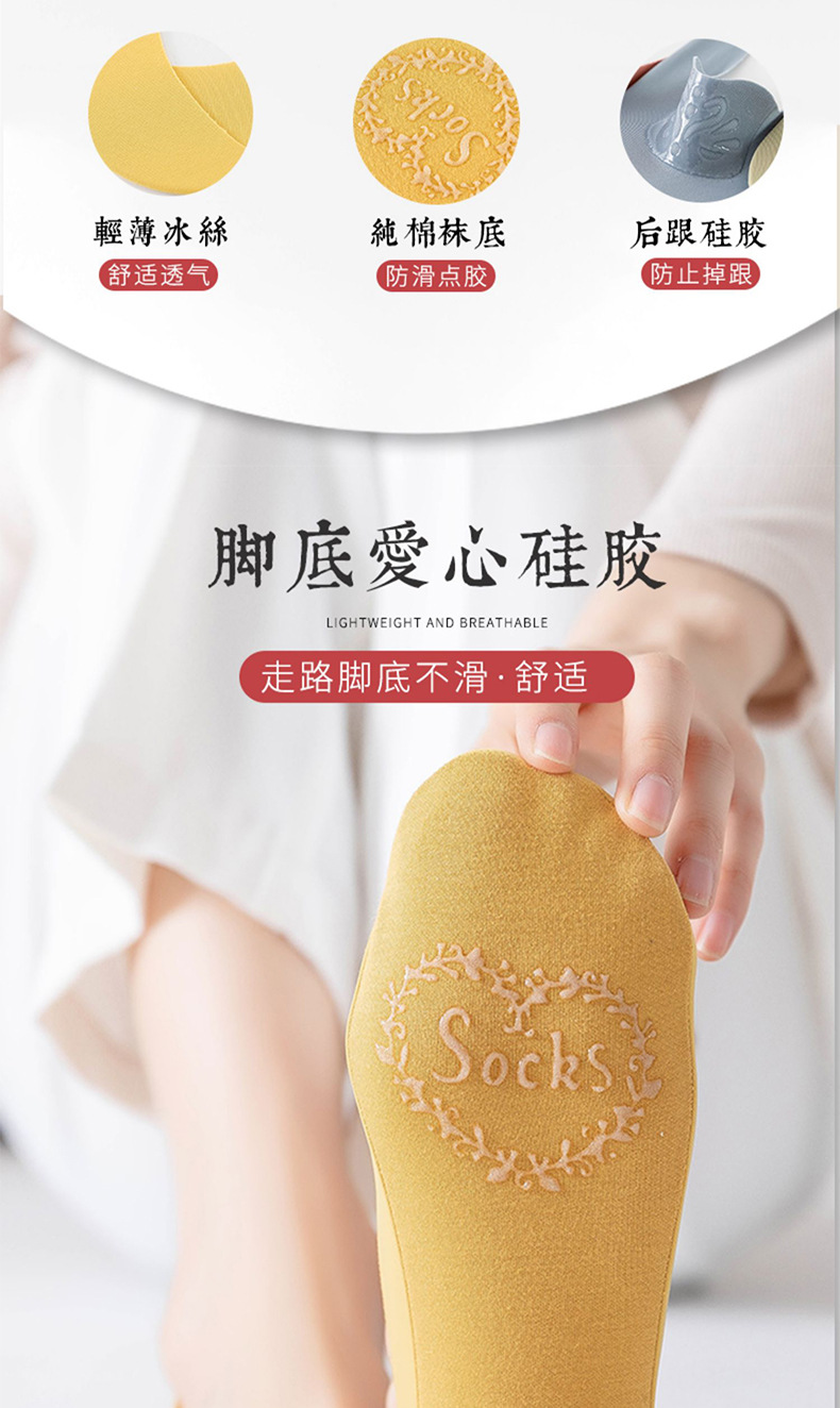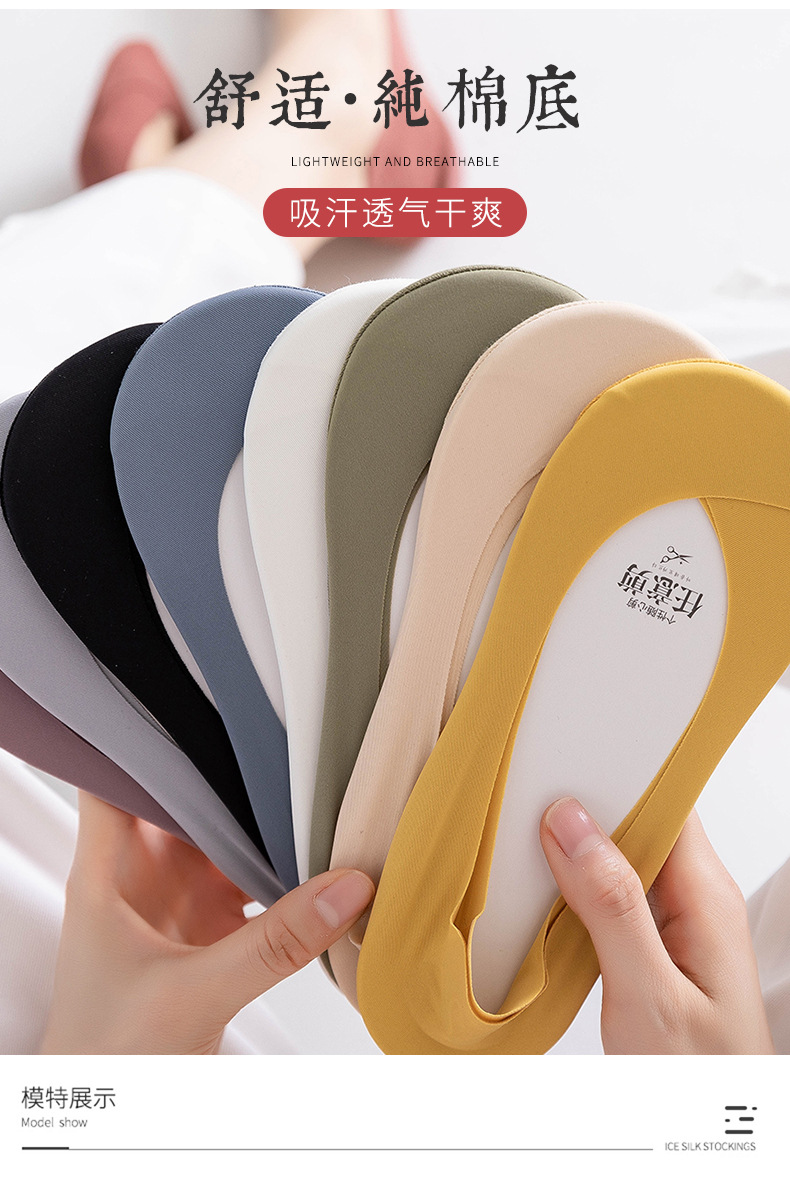 보트 양말 여성용 아이스 실크 여름 얇은 면 바닥 얕은 입 보이지 않는 양말 실리콘 미끄럼 방지 하이힐 양말스토어 가기
