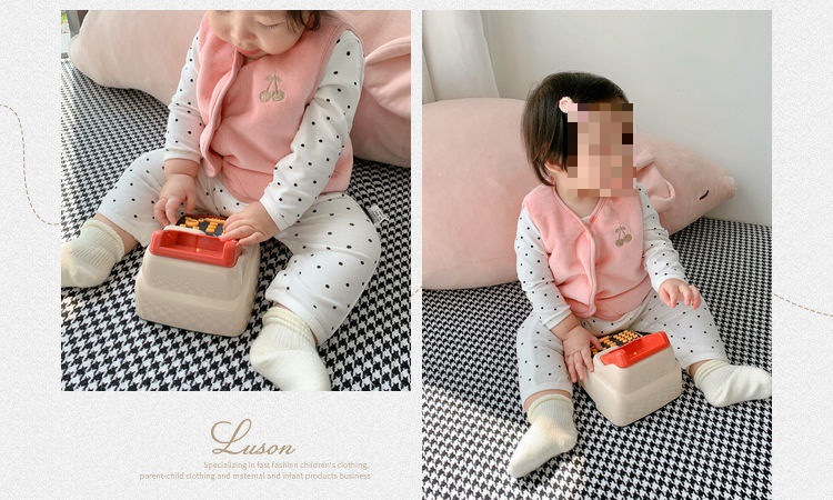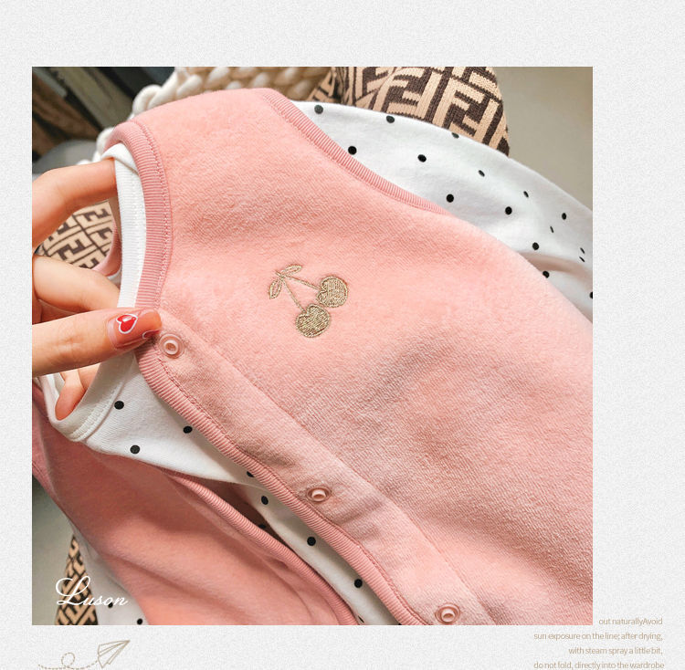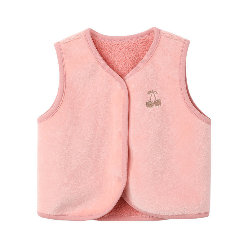 아기 가을과 겨울 의류 기모 작은 체리 자수 조끼 겨울 아기 소년과 소녀 신생아 양고기 벨벳 따뜻한 조끼