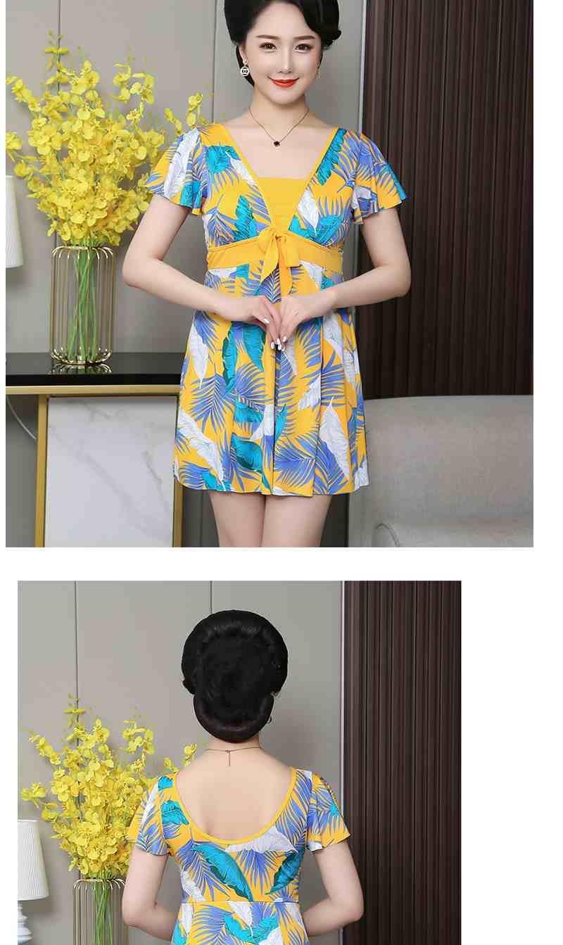 어머니의 수영복 여성의 보수적 인 중년 및 노인 슬리밍 배꼽 커버 플러스 사이즈 원피스 수영복 중년 어머니 온천 수영복스토어 가기