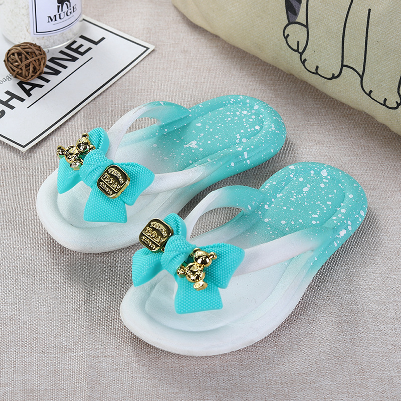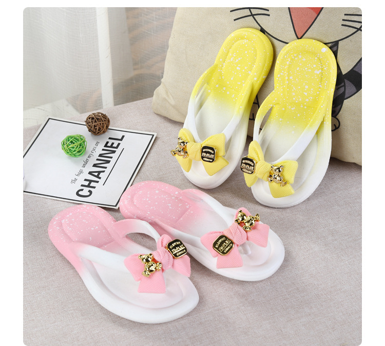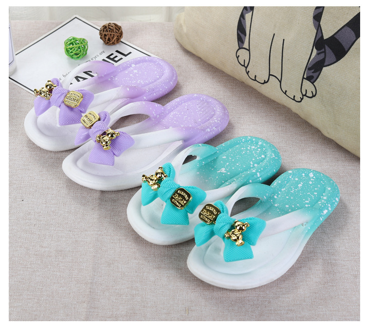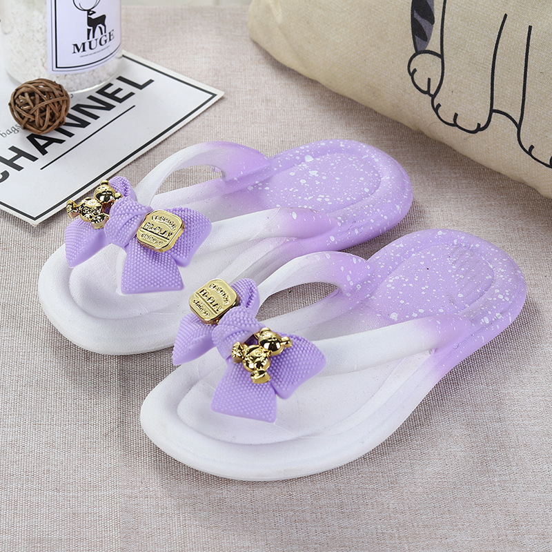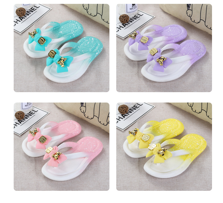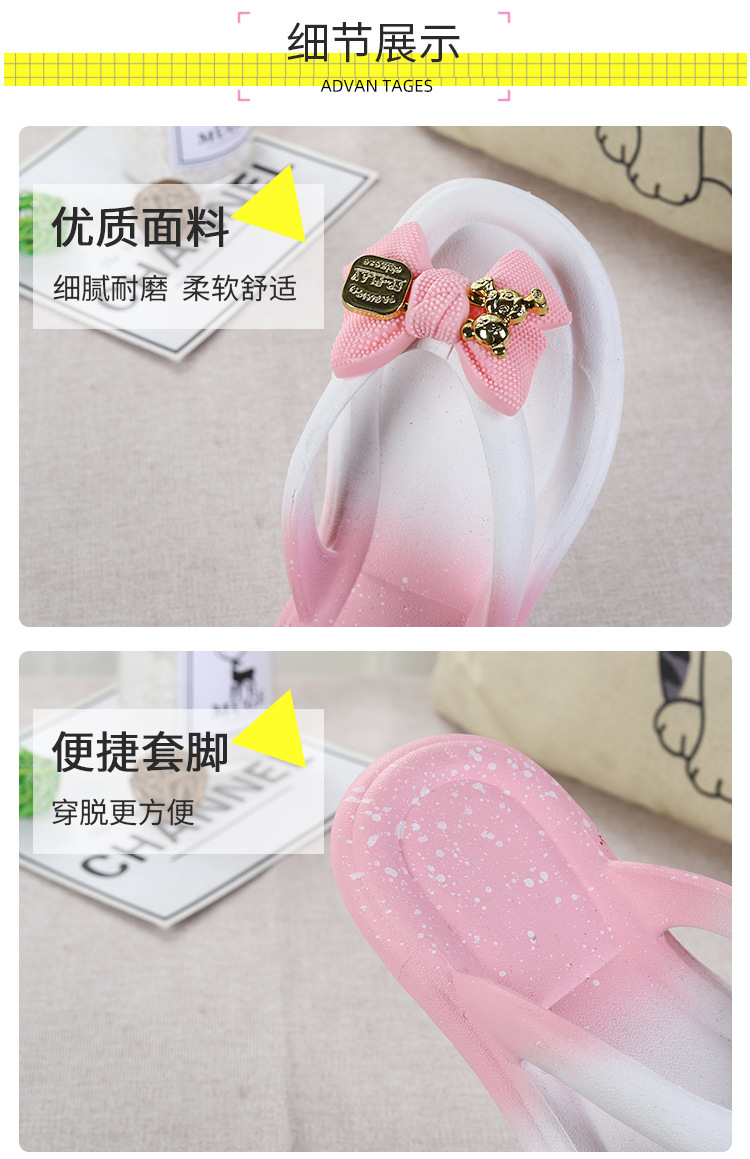 여성용 여름 슬리퍼, 미끄럼 방지, 한국 스타일, 리본 장식, 해변, 부모-자식, 귀여운, 학생용, 캐주얼, 다용도