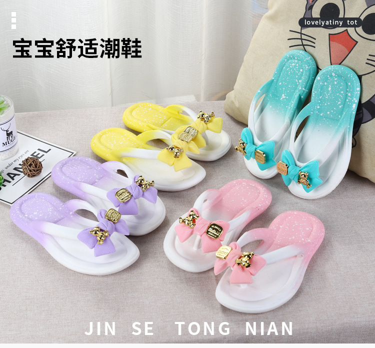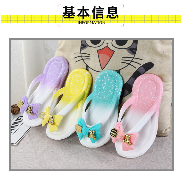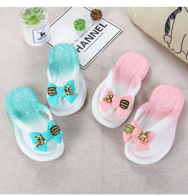 여성용 여름 슬리퍼, 미끄럼 방지, 한국 스타일, 리본 장식, 해변, 부모-자식, 귀여운, 학생용, 캐주얼, 다용도스토어 가기