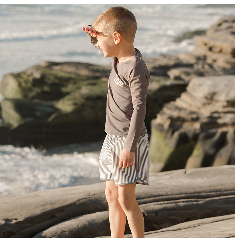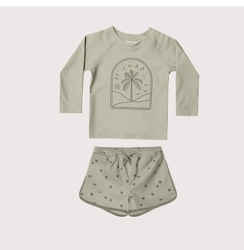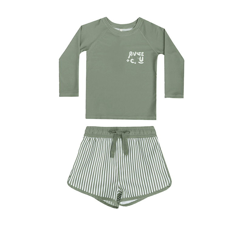 2025 여름 새로운 어린이 긴 소매 수영복 수영 트렁크 태양 보호 아기 소년 분할 수영복 비치 수영복