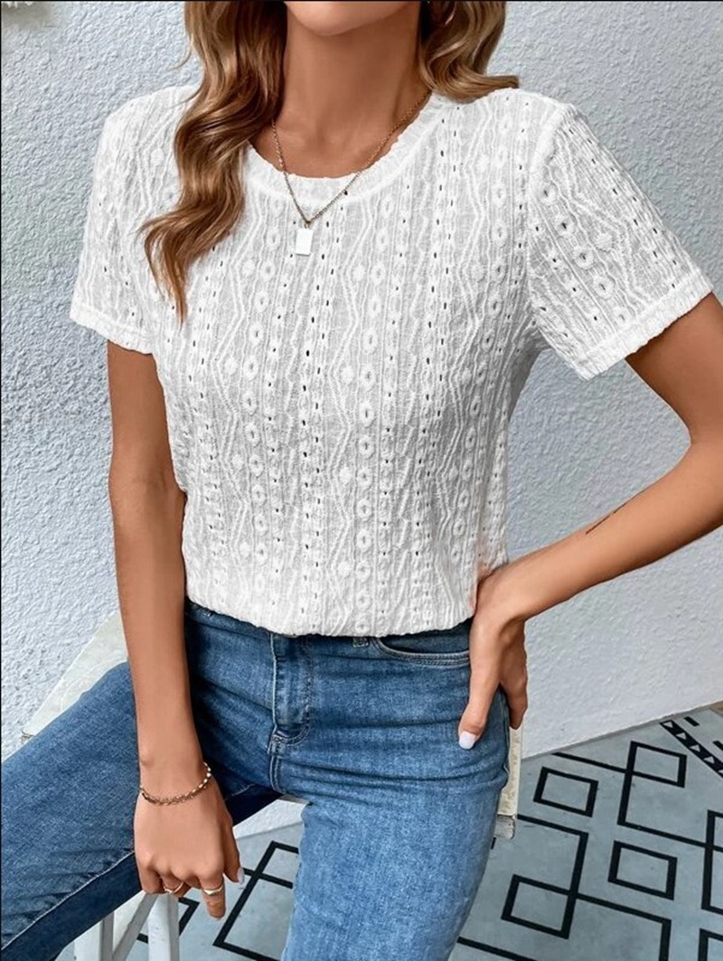 2023 아마존 이베이 독립 역 유럽과 미국 여름 새로운 단색 반소매 중공 캐주얼 셔츠 크로스 보더 재고
