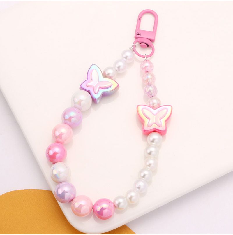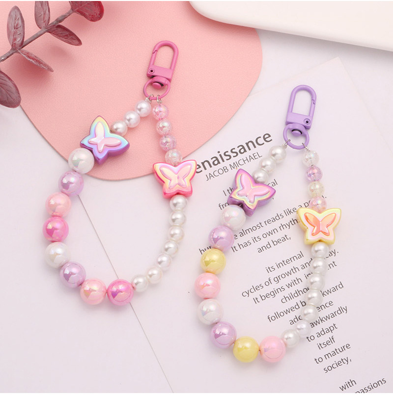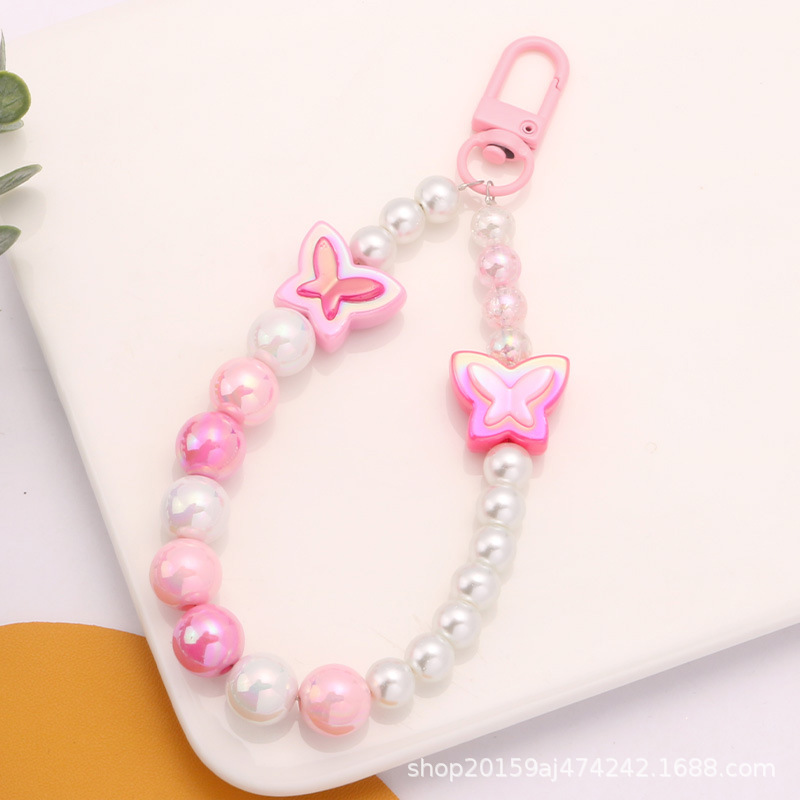 DIY 아크릴 대비 색상 활 진주 자동차 키 체인 펜던트 창조적 인 색상 페르시 액세서리 가방 장식