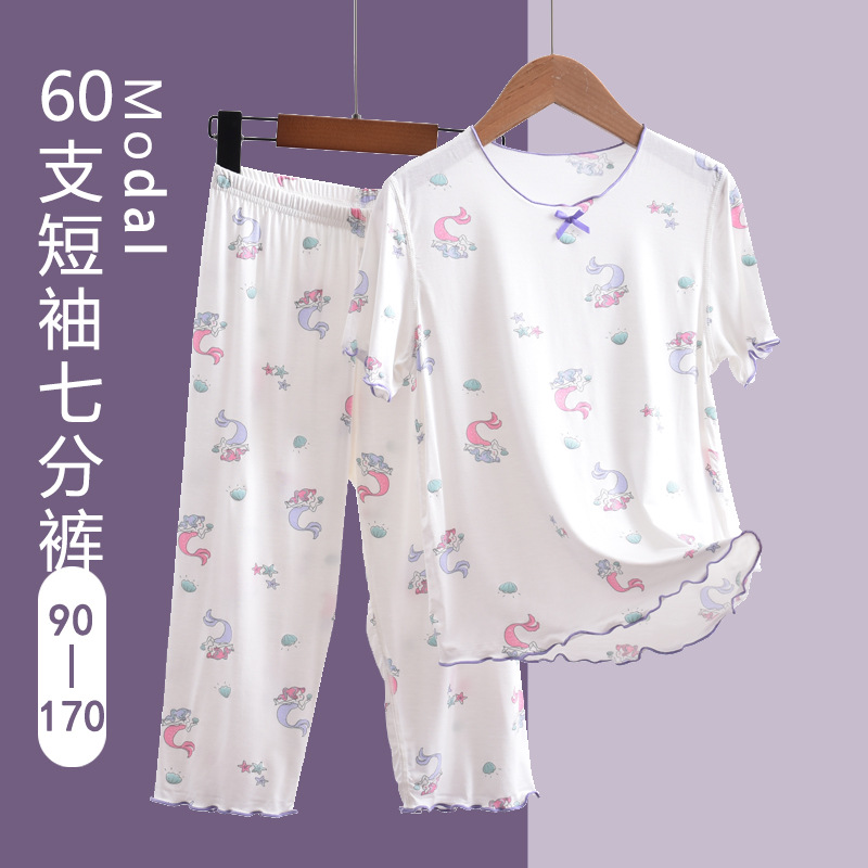 60 모달 어린이 잠옷 세트 반팔 소녀 큰 어린이 가정 옷 아기 여름 아이스 실크 에어컨 옷스토어 가기