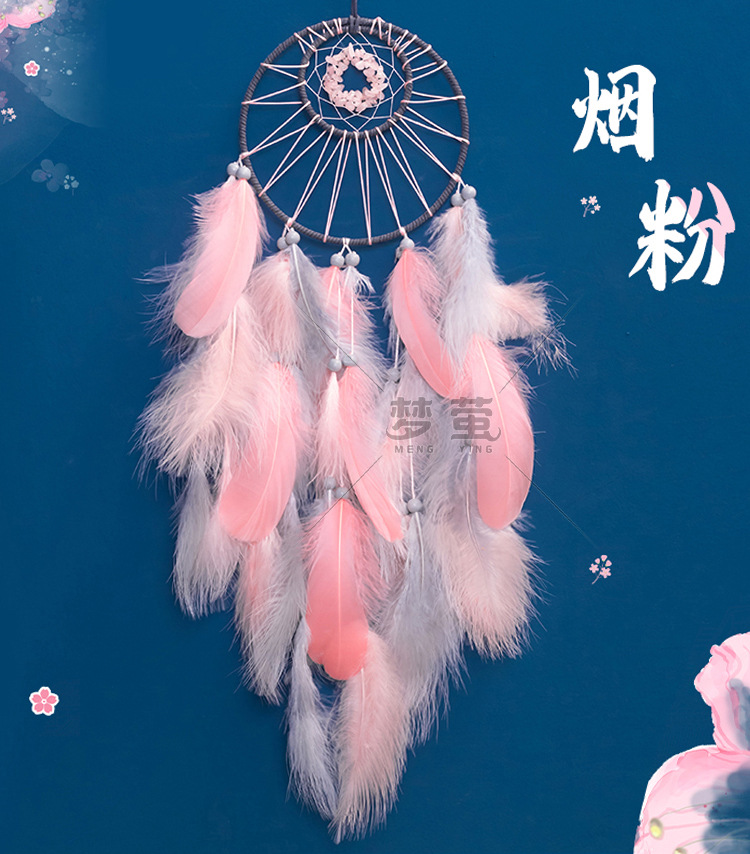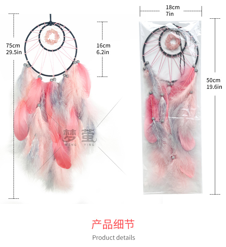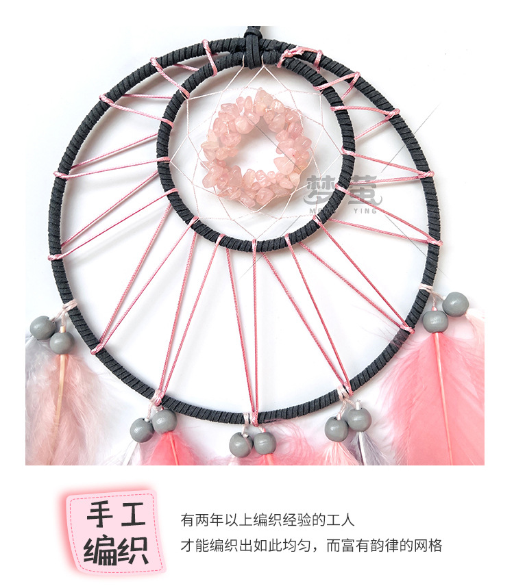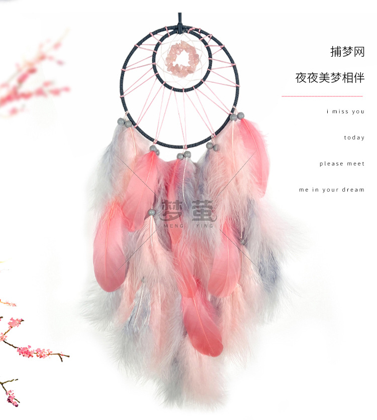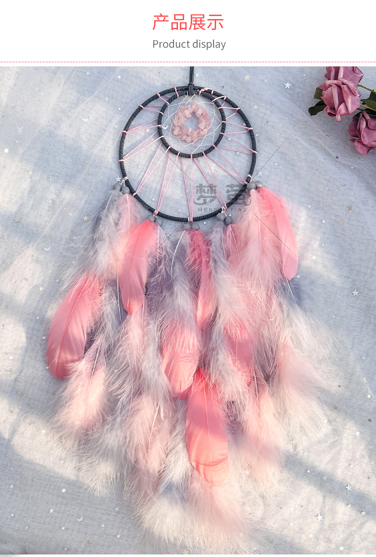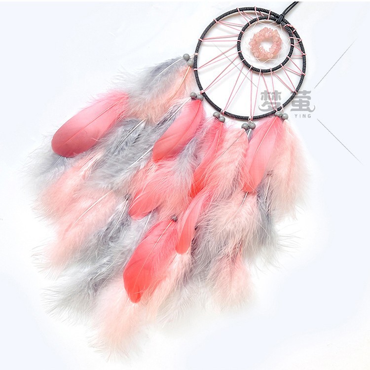 [오리지널 드림 호타루] 크리스탈 스톤 드림 캐쳐 교수형 장식품 해외 무역 용 손으로 짠 이중 링 깃털 펜던트