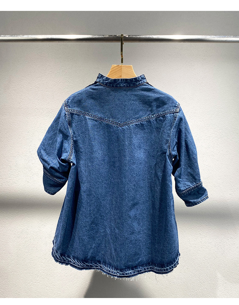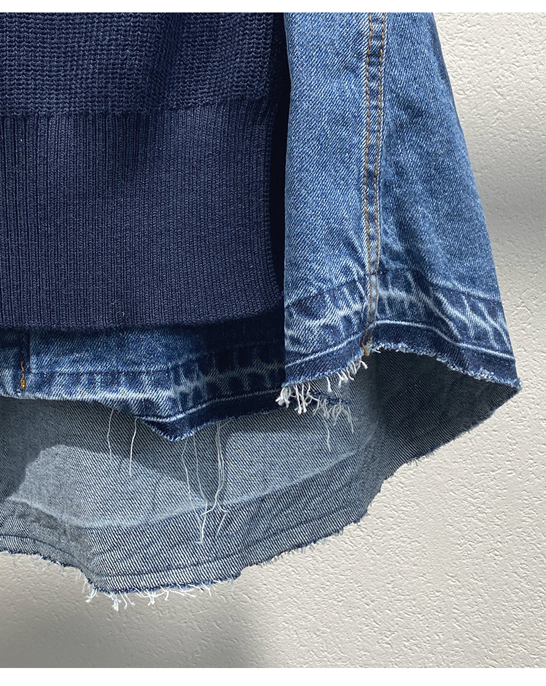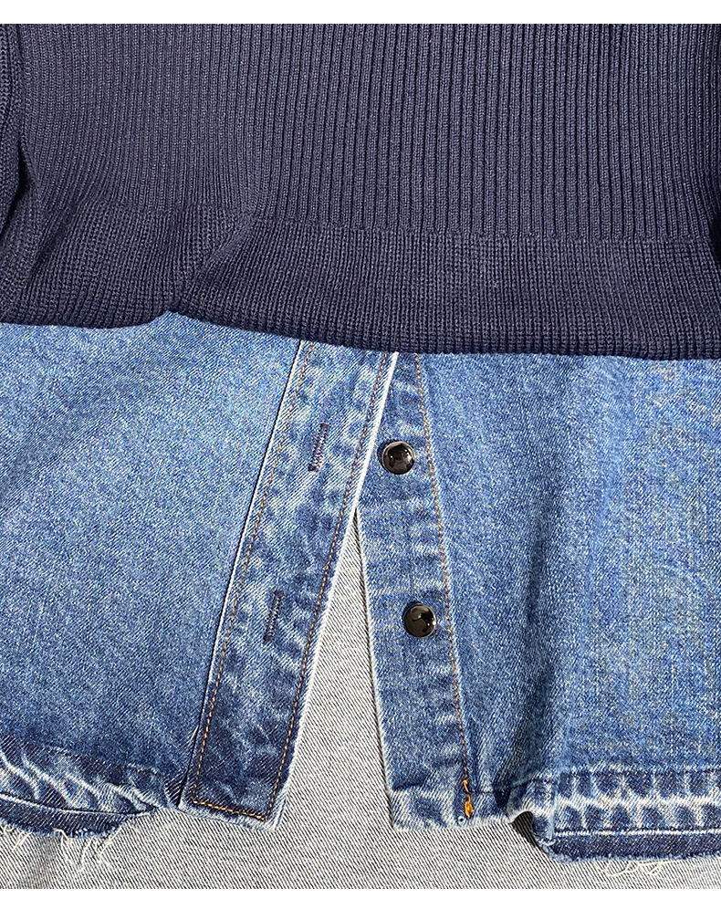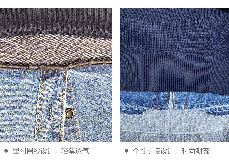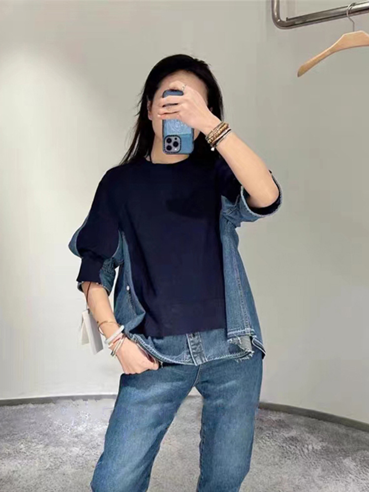 틈새 2023 봄 새로운 풀오버 올 매치 스웨터 탑 패션 데님 바느질 반팔 스웨터 여성 트렌드스토어 가기