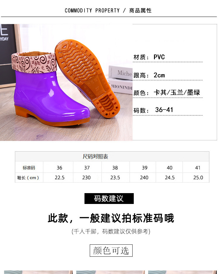 옥스포드 바닥 레인 부츠 여성 패션 짧은 튜브 미끄럼 방지 물 신발 도매 성인 겉옷 워터 부츠 방수 장화 작업 고무 신발