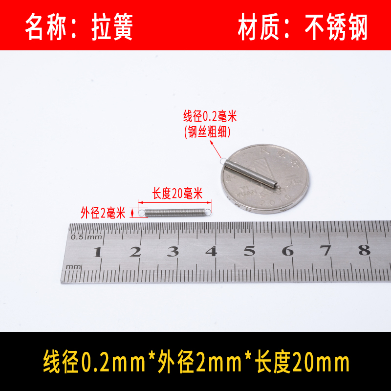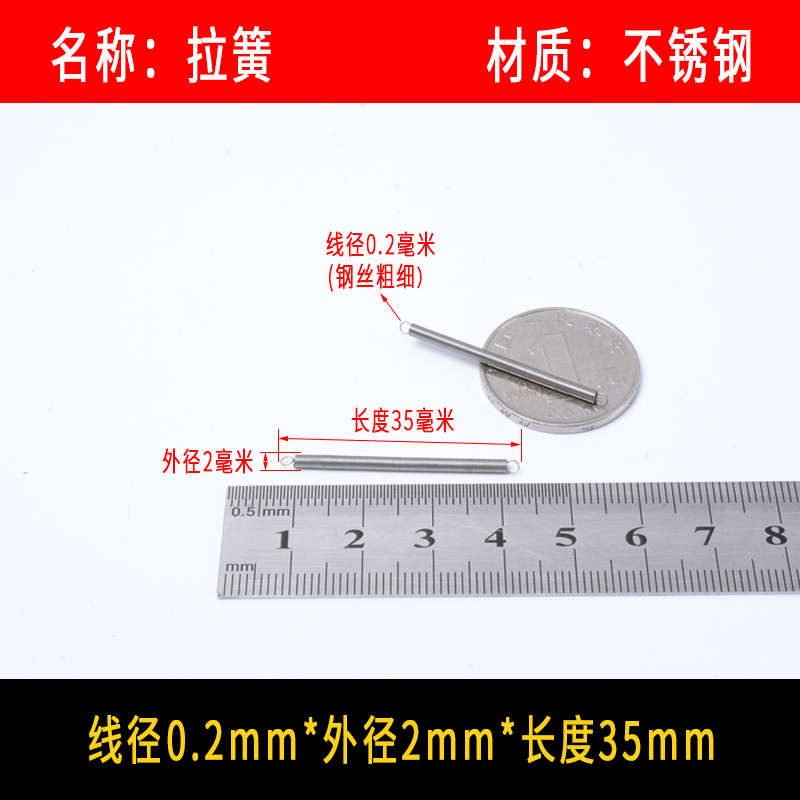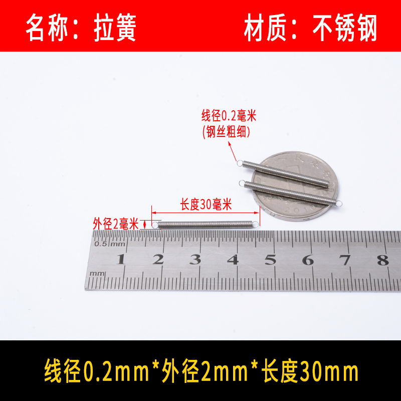 • 〈〈다음은 와이어 직경이 0.2mm인 스테인레스 스틸 인장 스프링입니다. 다른 크기가 필요한 경우〉〉