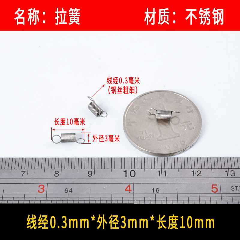 • 〈〈다음은 와이어 직경이 0.3mm인 스테인레스 스틸 인장 스프링입니다. 다른 크기가 필요한 경우〉〉