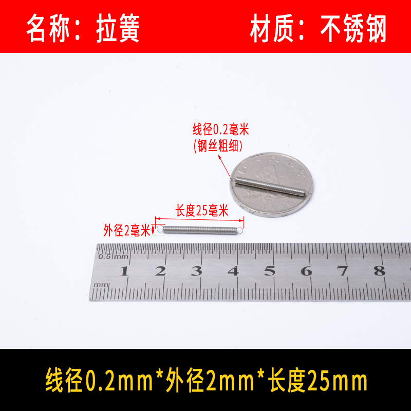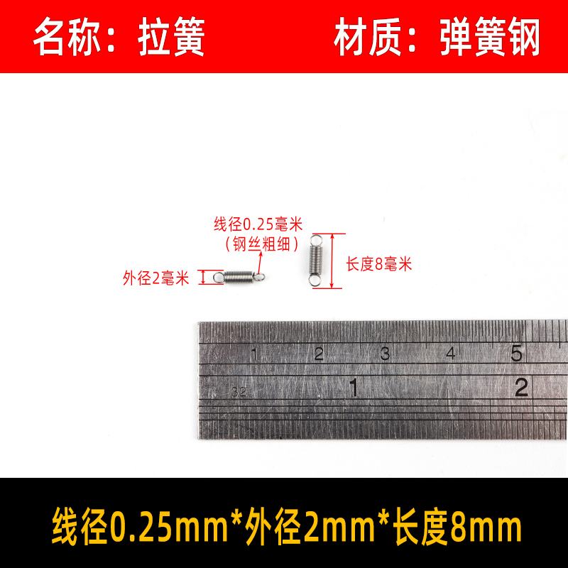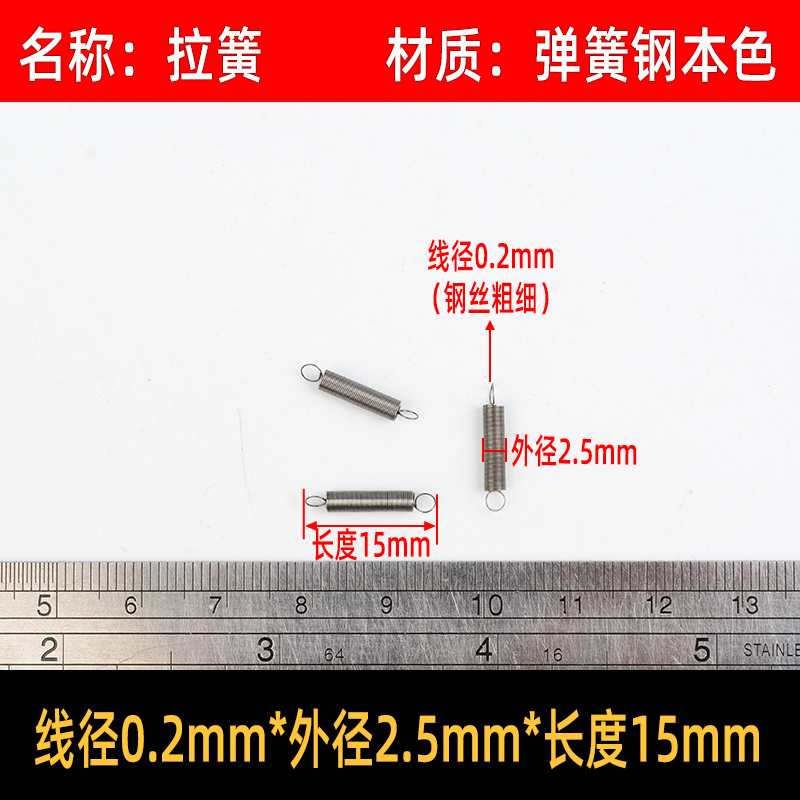• 〈〈다음은 와이어 직경이 0.2mm인 스프링 강철 인장 스프링입니다. 다른 크기가 필요한 경우〉〉