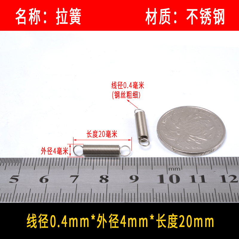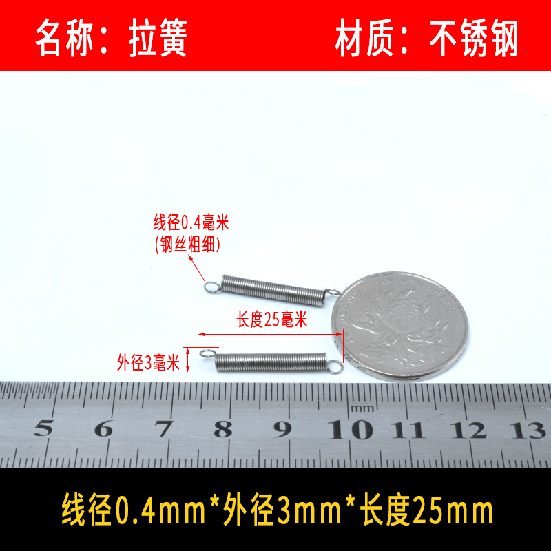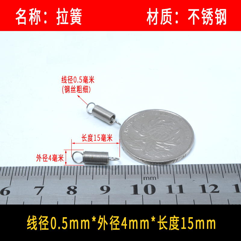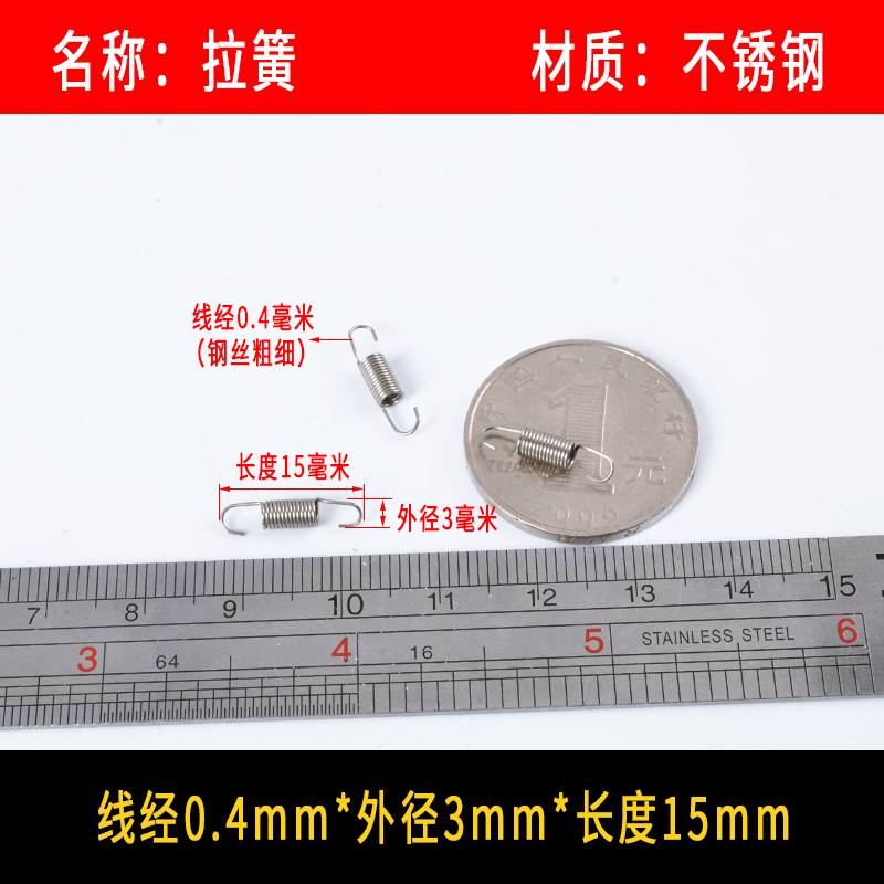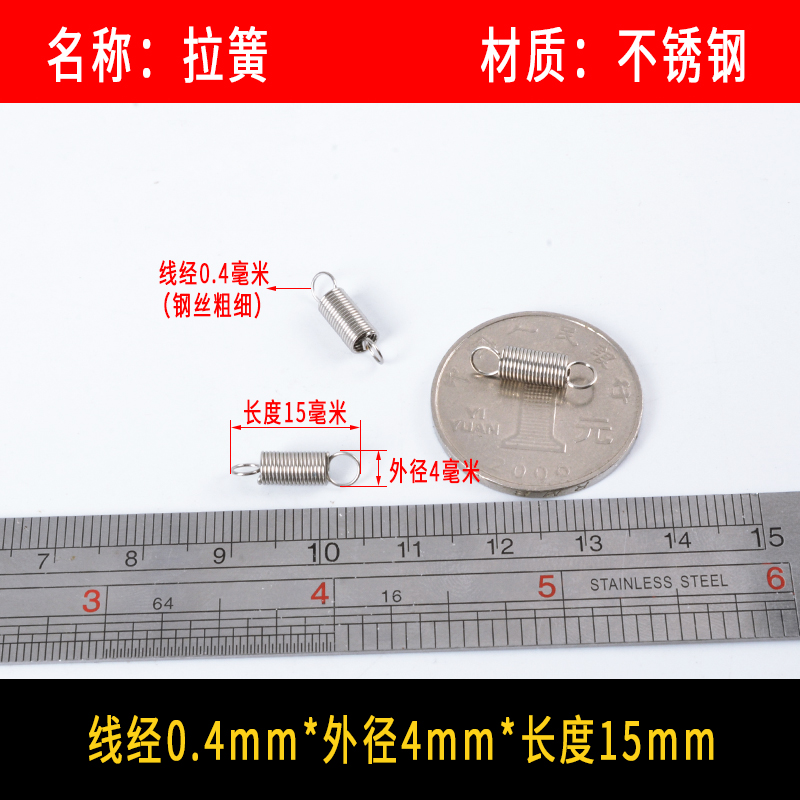 • 〈〈다음은 와이어 직경이 0.4mm인 스테인레스 스틸 인장 스프링입니다. 다른 크기가 필요한 경우〉〉