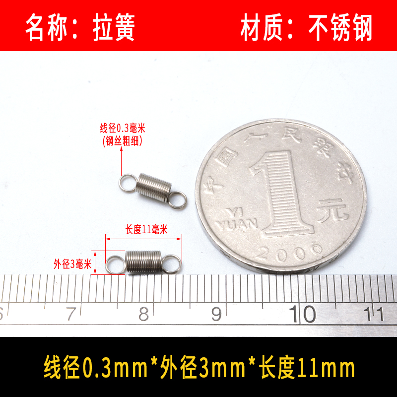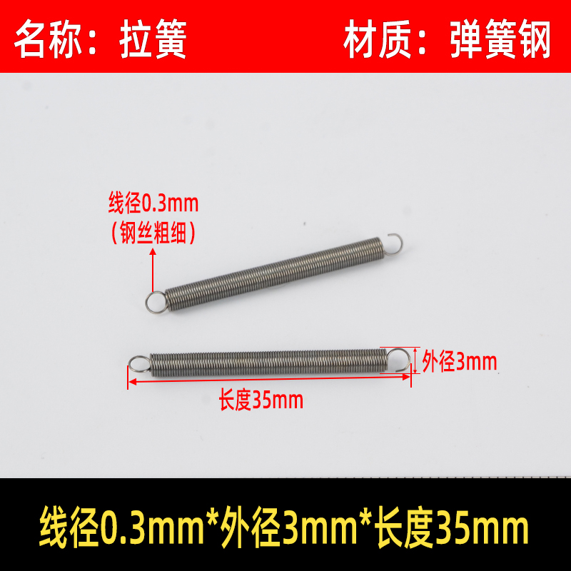 • 〈〈다음은 와이어 직경이 0.3mm인 스프링 강철 인장 스프링입니다. 다른 크기가 필요한 경우〉〉