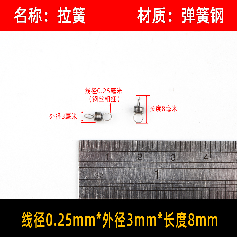 • 〈〈다음은 와이어 직경이 0.25mm인 스프링 강철 인장 스프링입니다. 다른 크기가 필요한 경우〉〉