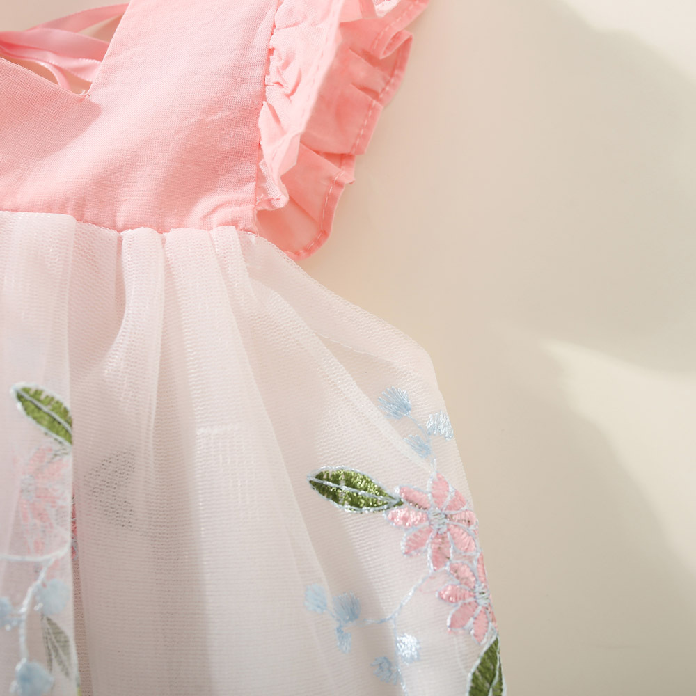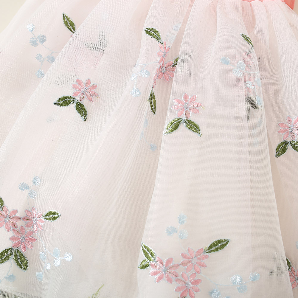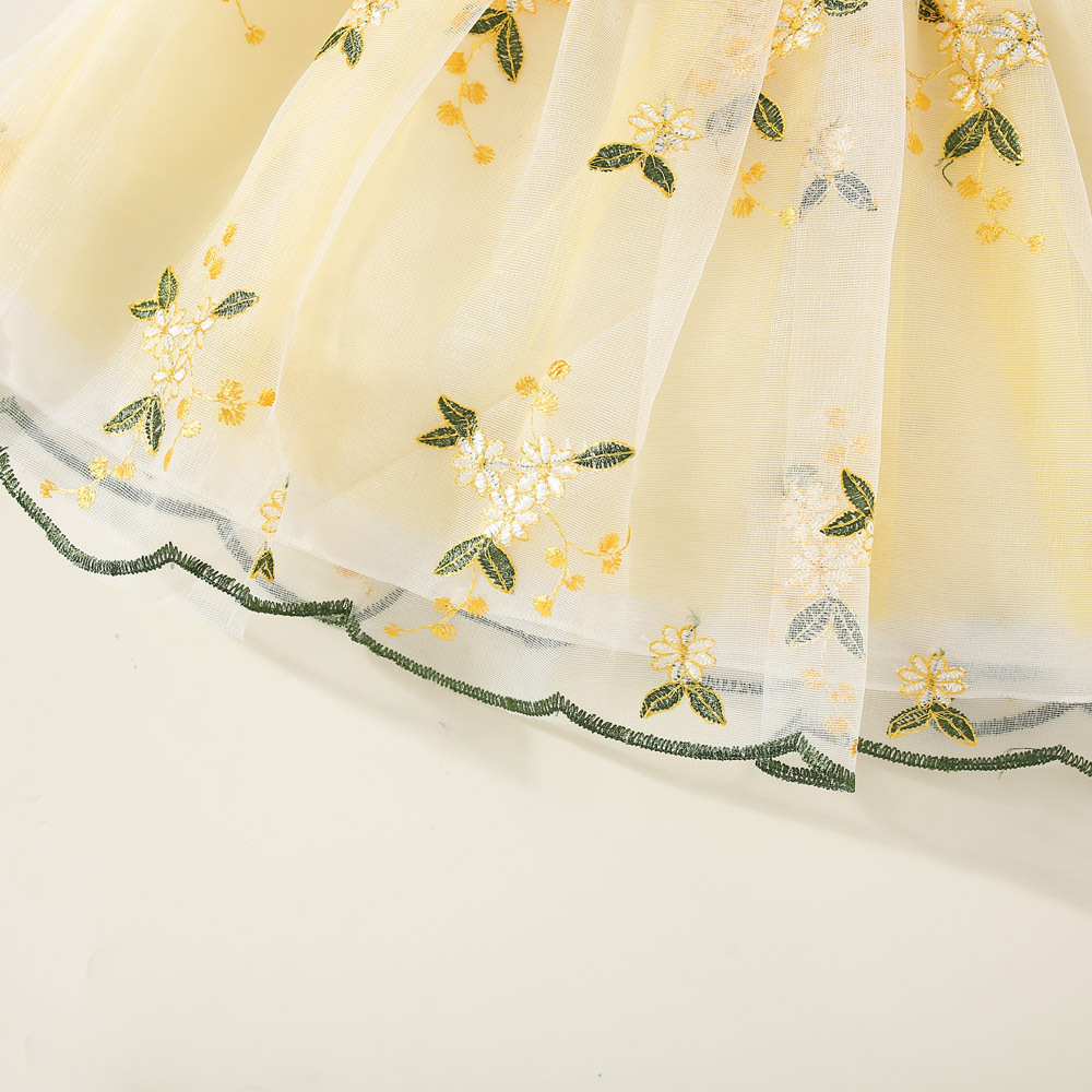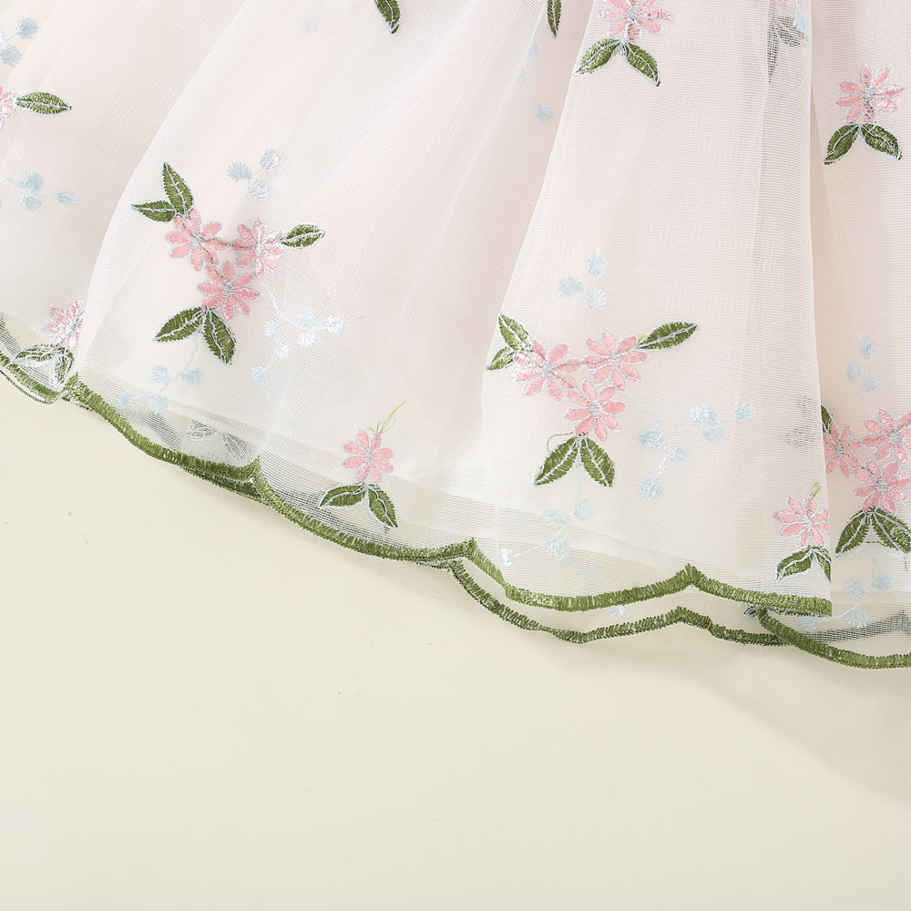 여아 원피스 2023 여름 아동 의류 새로운 꽃 수 놓은 메쉬 작은 비행 소매 공주 스타일 한국 스타일 어린이 원피스스토어 가기