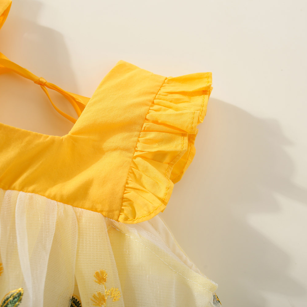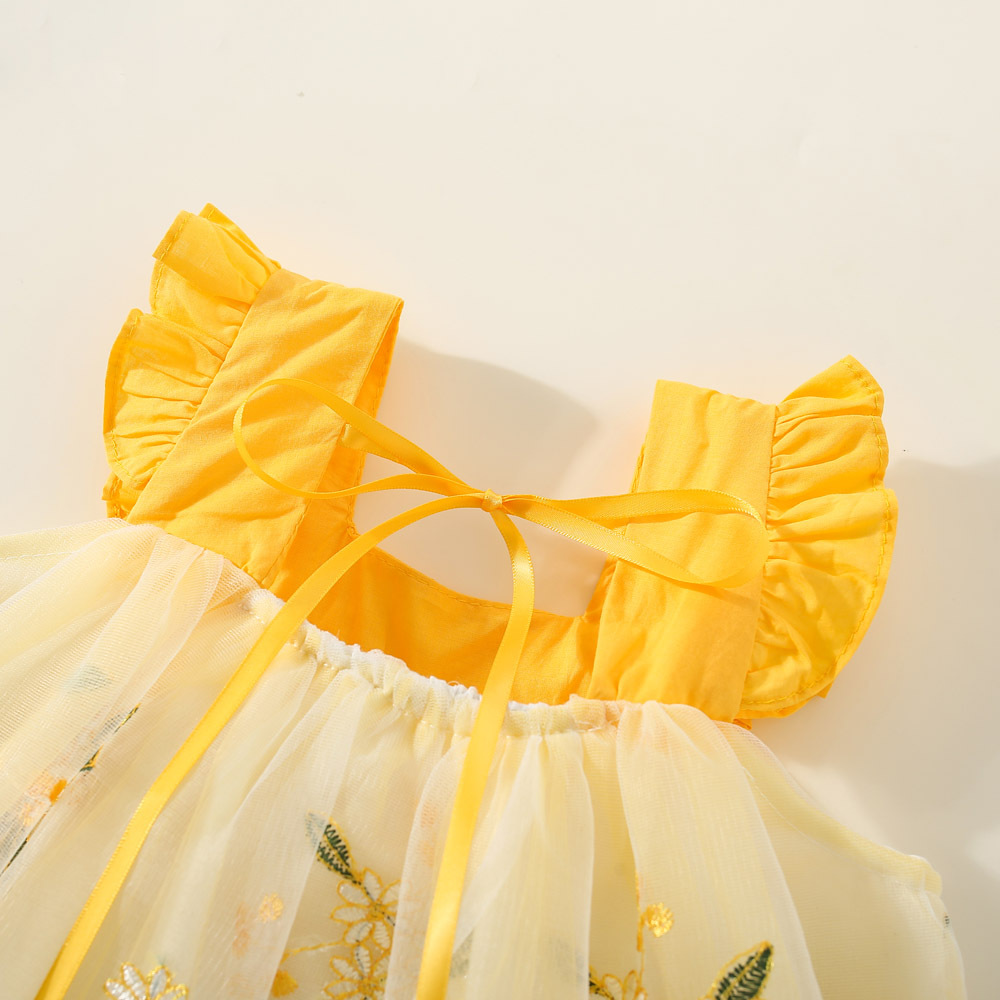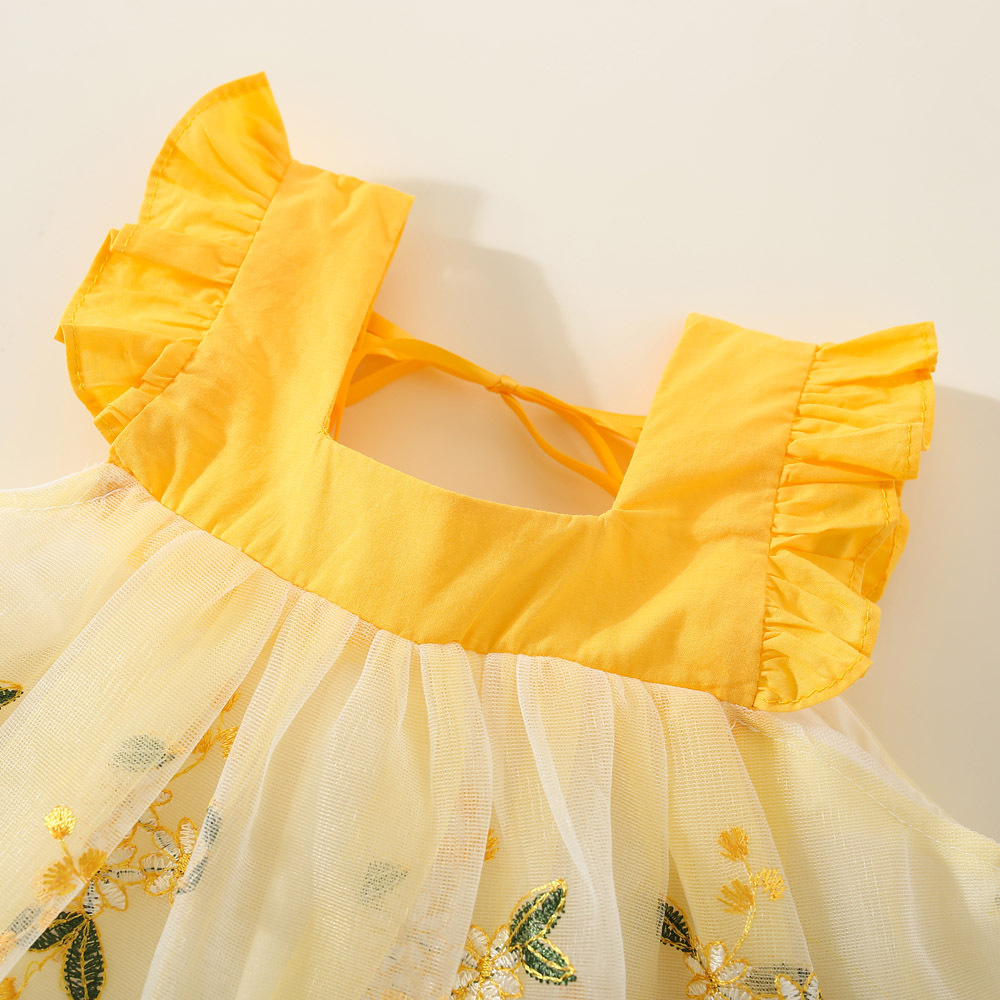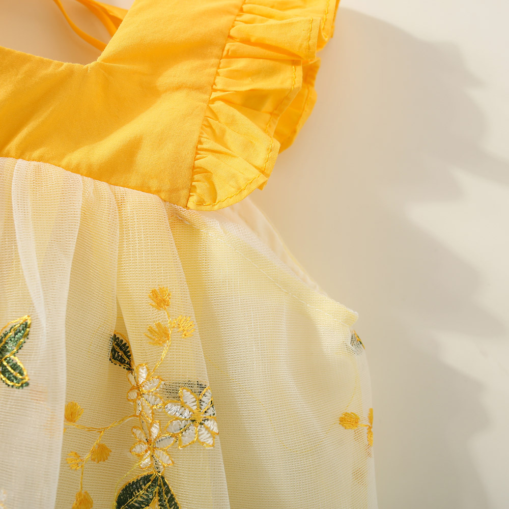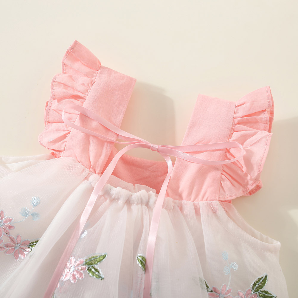 여아 원피스 2023 여름 아동 의류 새로운 꽃 수 놓은 메쉬 작은 비행 소매 공주 스타일 한국 스타일 어린이 원피스스토어 가기